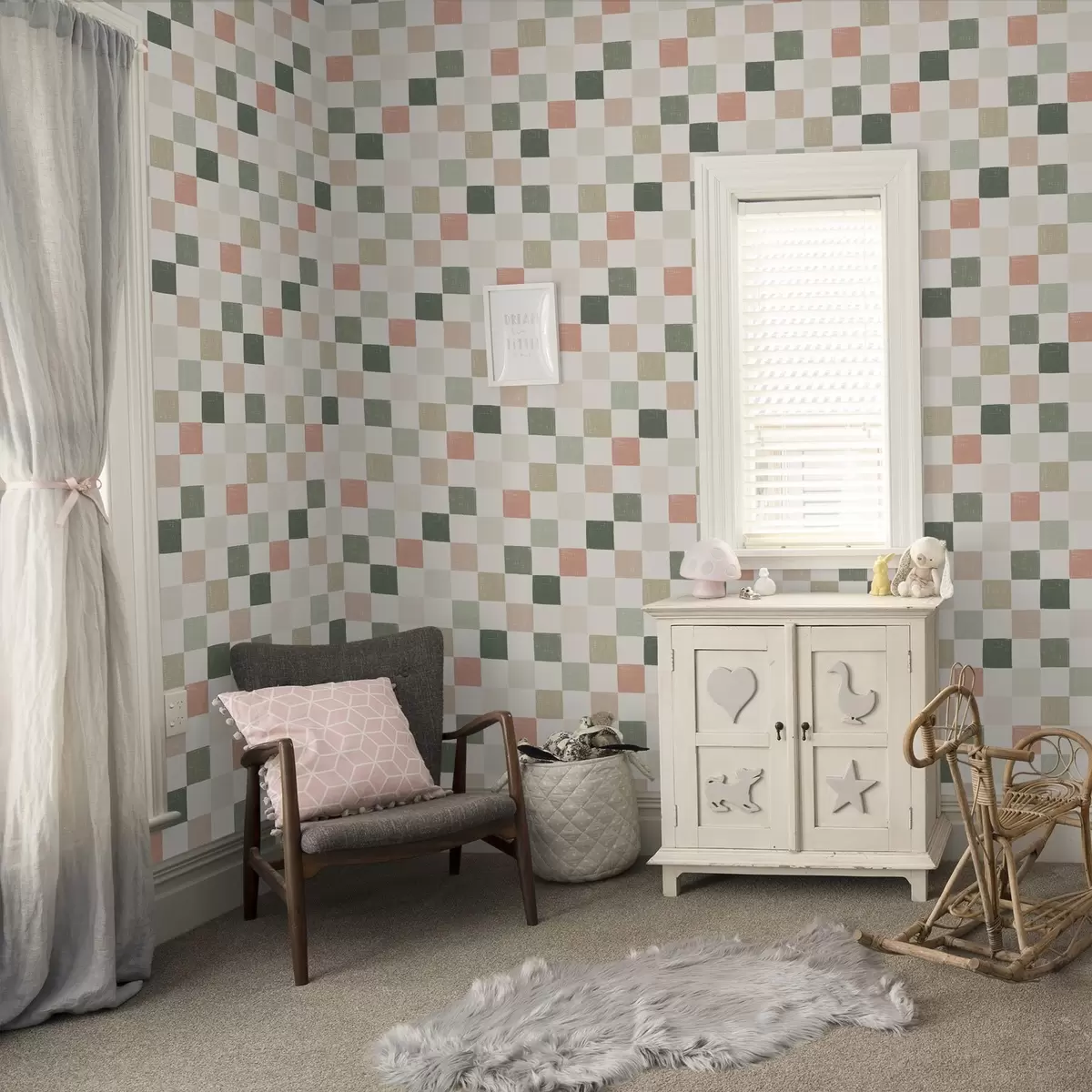 Tapeta Měkká kostkovaná deka v pastelových odstínech zelené, růžové a béžové Nr. a00676