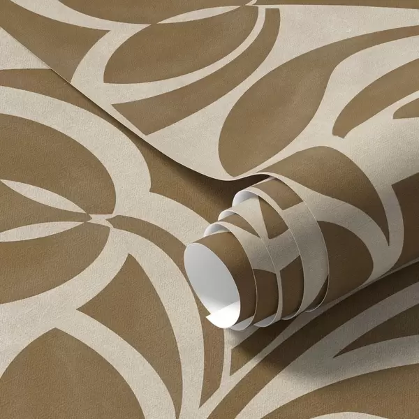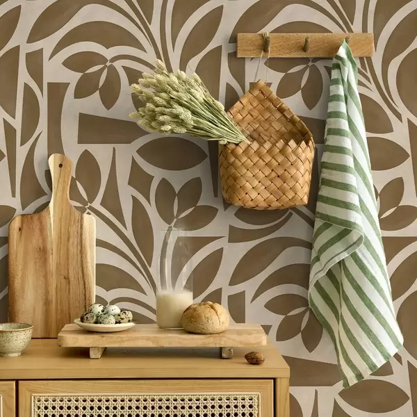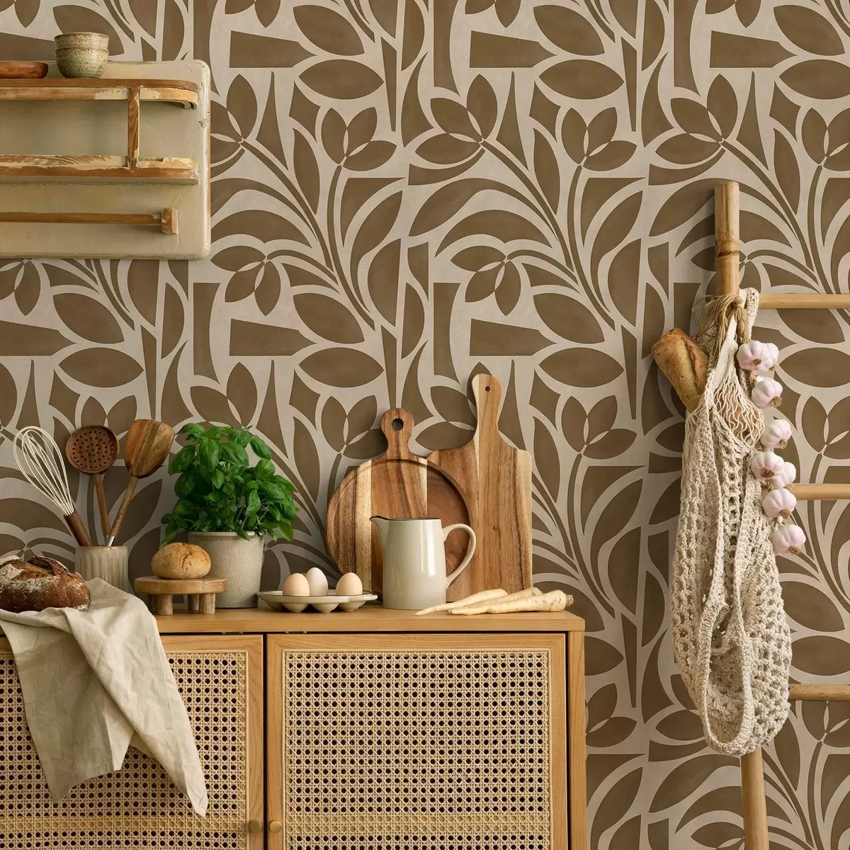 Tapeta Geometrické siluety listů, karamelově hnědé na béžovém podkladu Nr. a00679