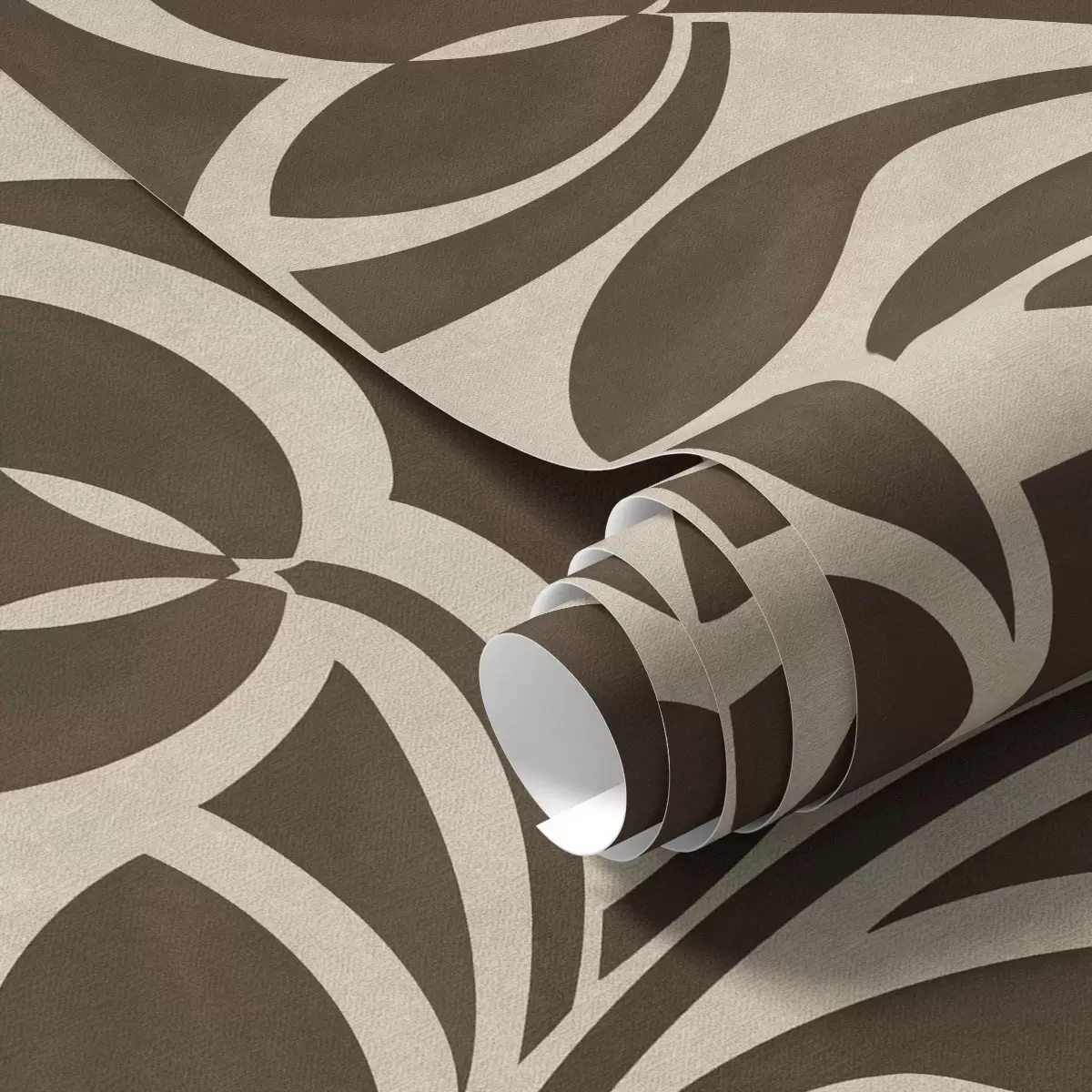 Tapeta Geometrické siluety listů, tmavě hnědé na béžovém pozadí Nr. a00679v1