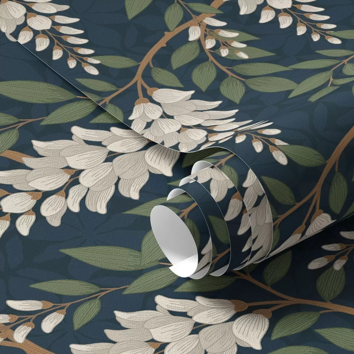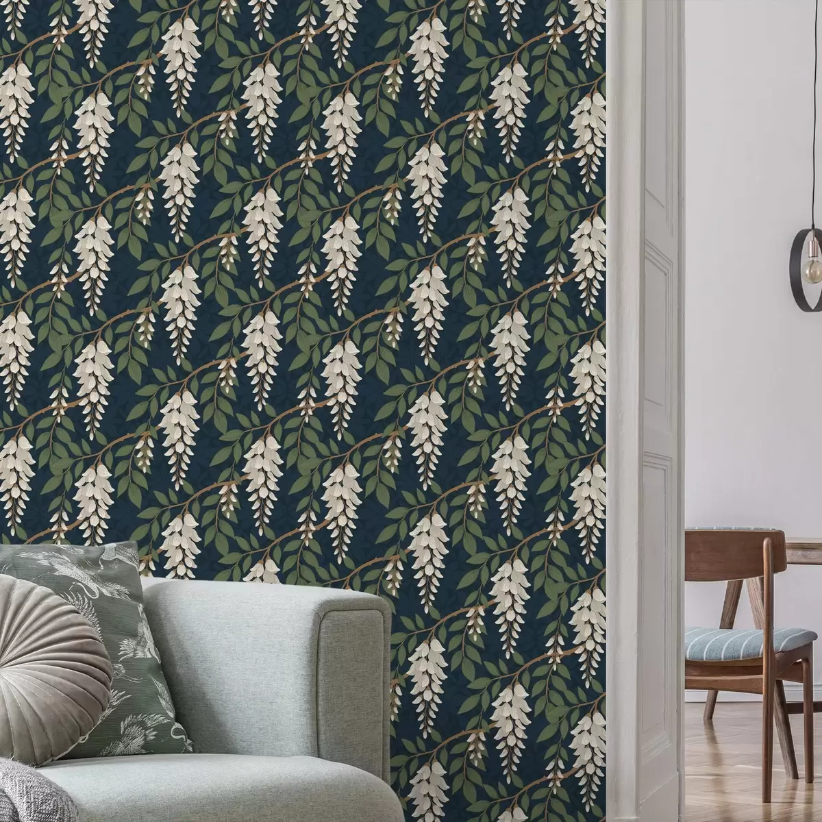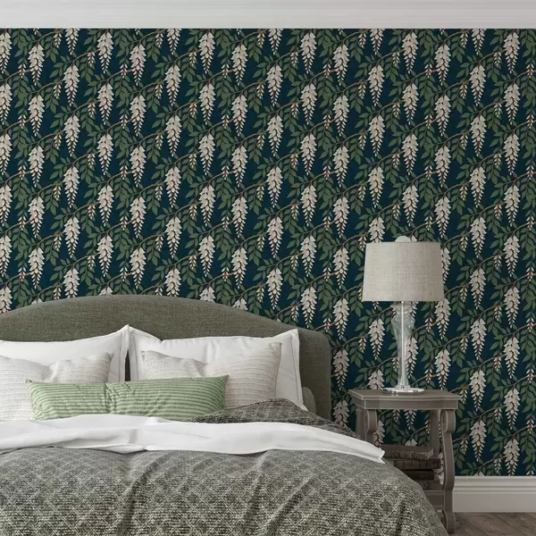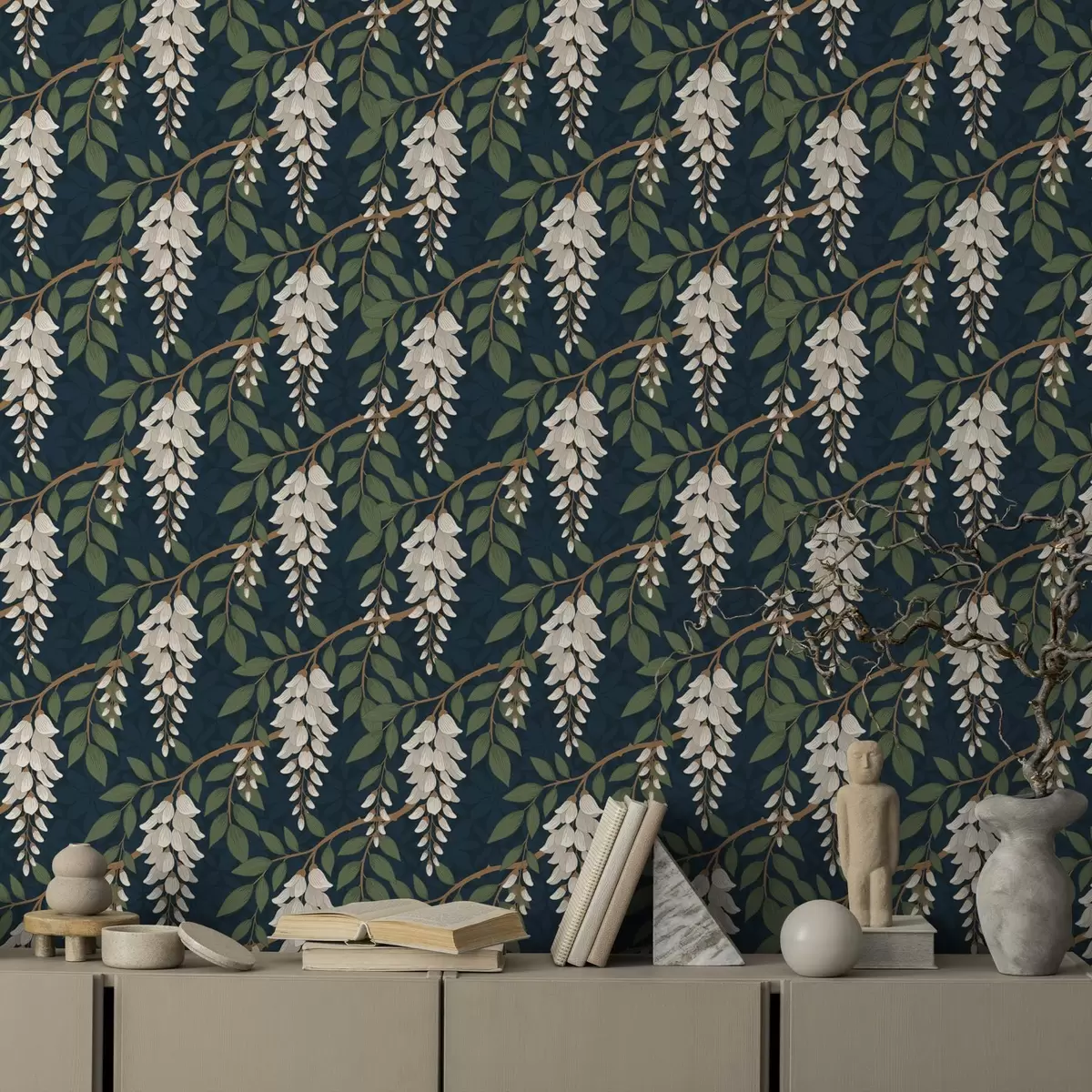 Tapeta Slonovinová vistárie na tmavě modrozeleném pozadí Nr. a00694v1