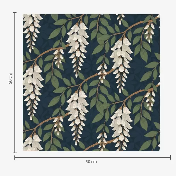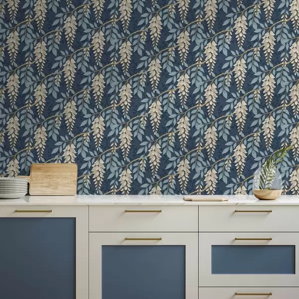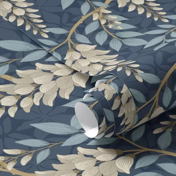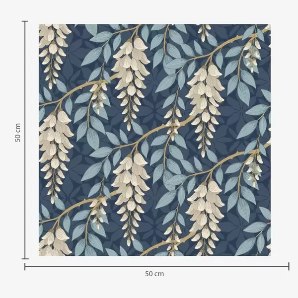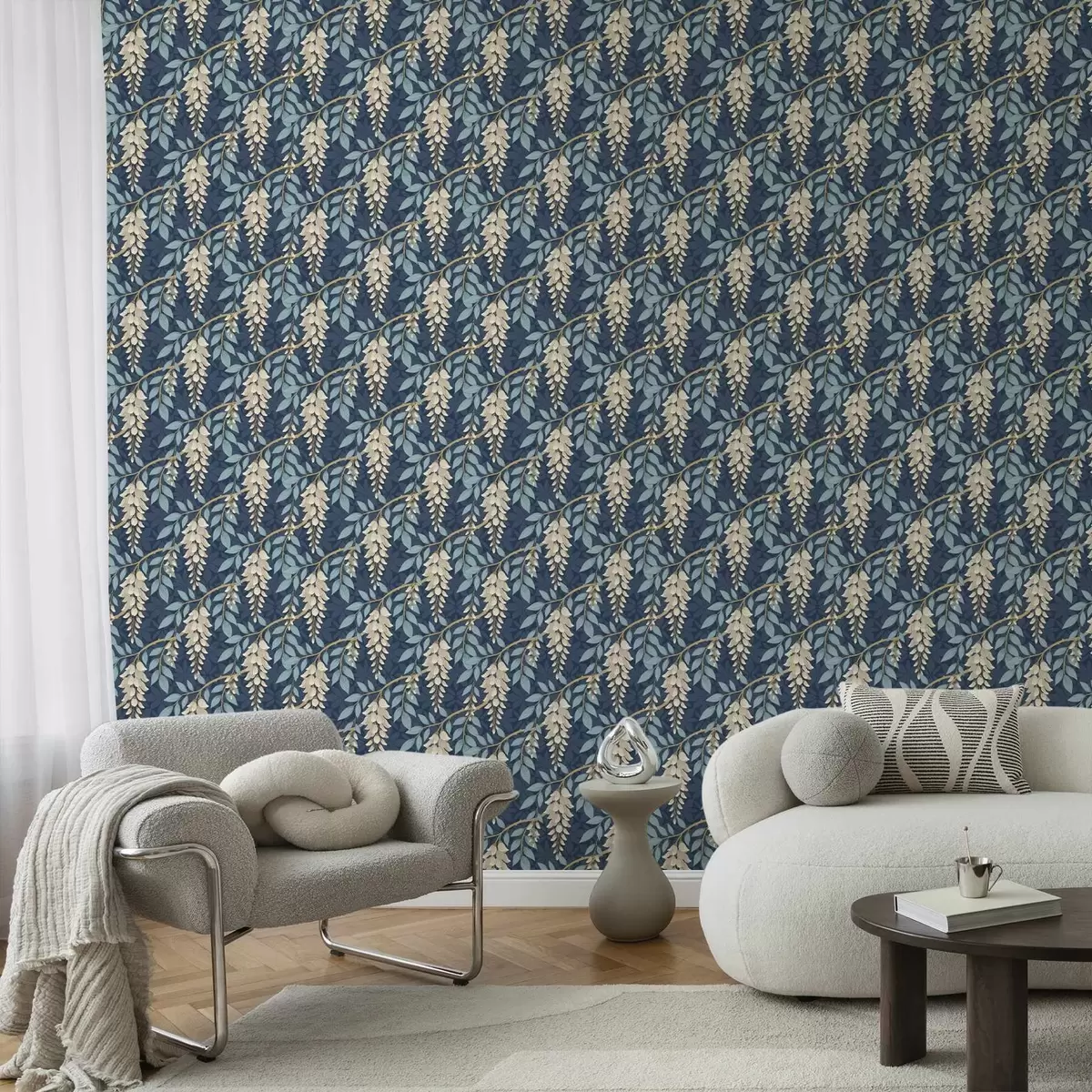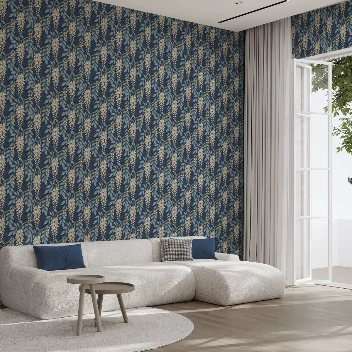 Tapeta Wisteria s modrými listy na tmavě modrém pozadí Nr. a00694v2