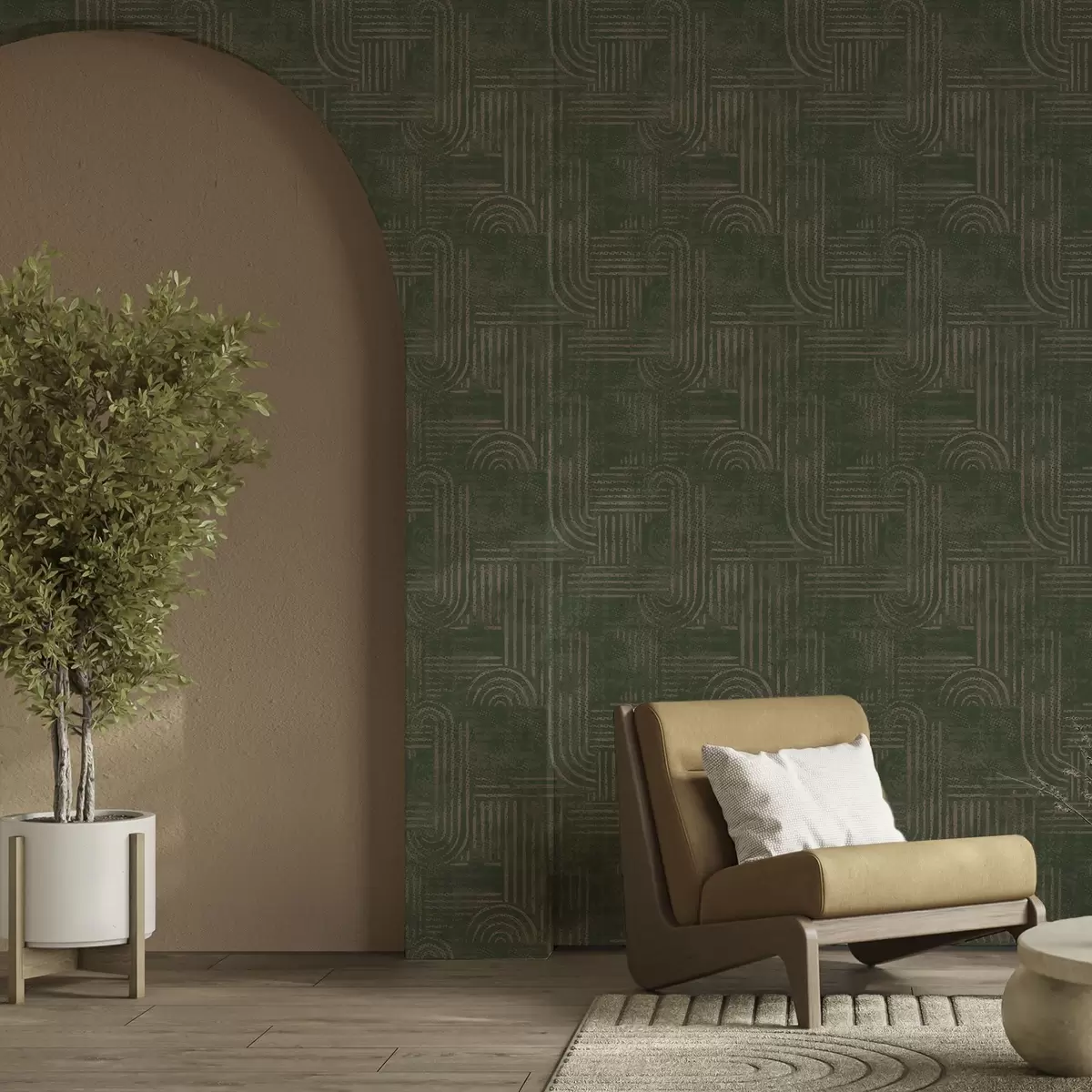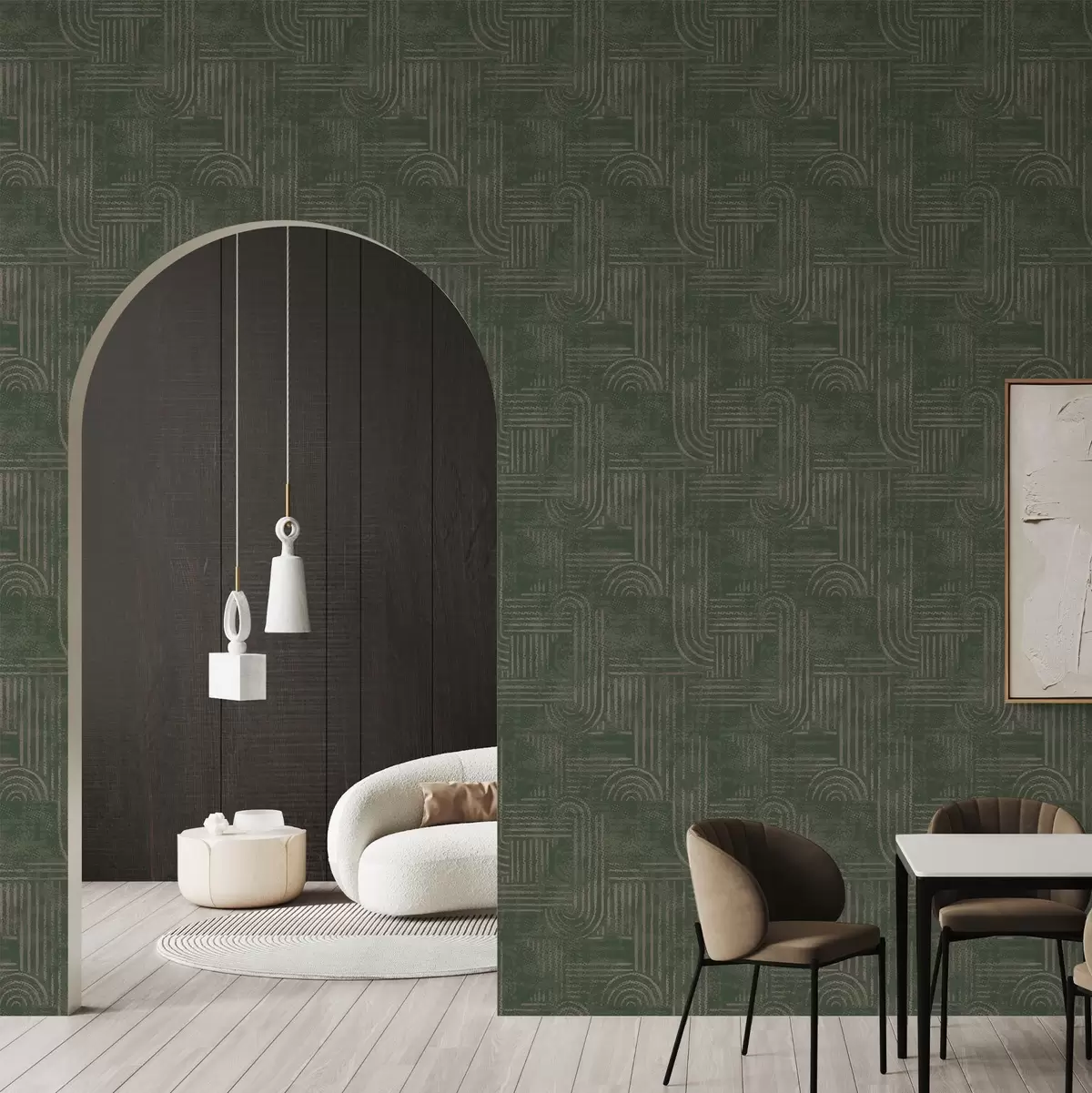 Tapeta Geometrický vzor s oblouky v zelené paletě Nr. a00697