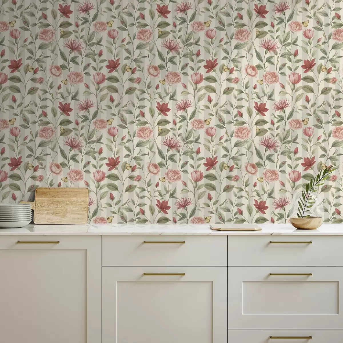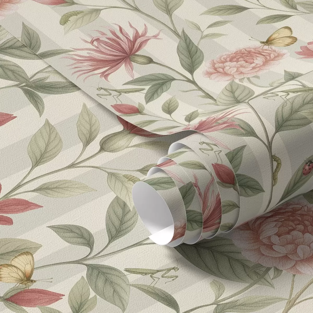 Tapeta Květinové stonky s motýly na světlém pozadí Nr. a00698