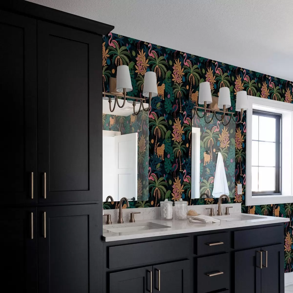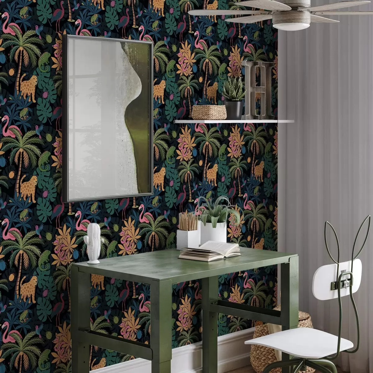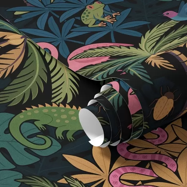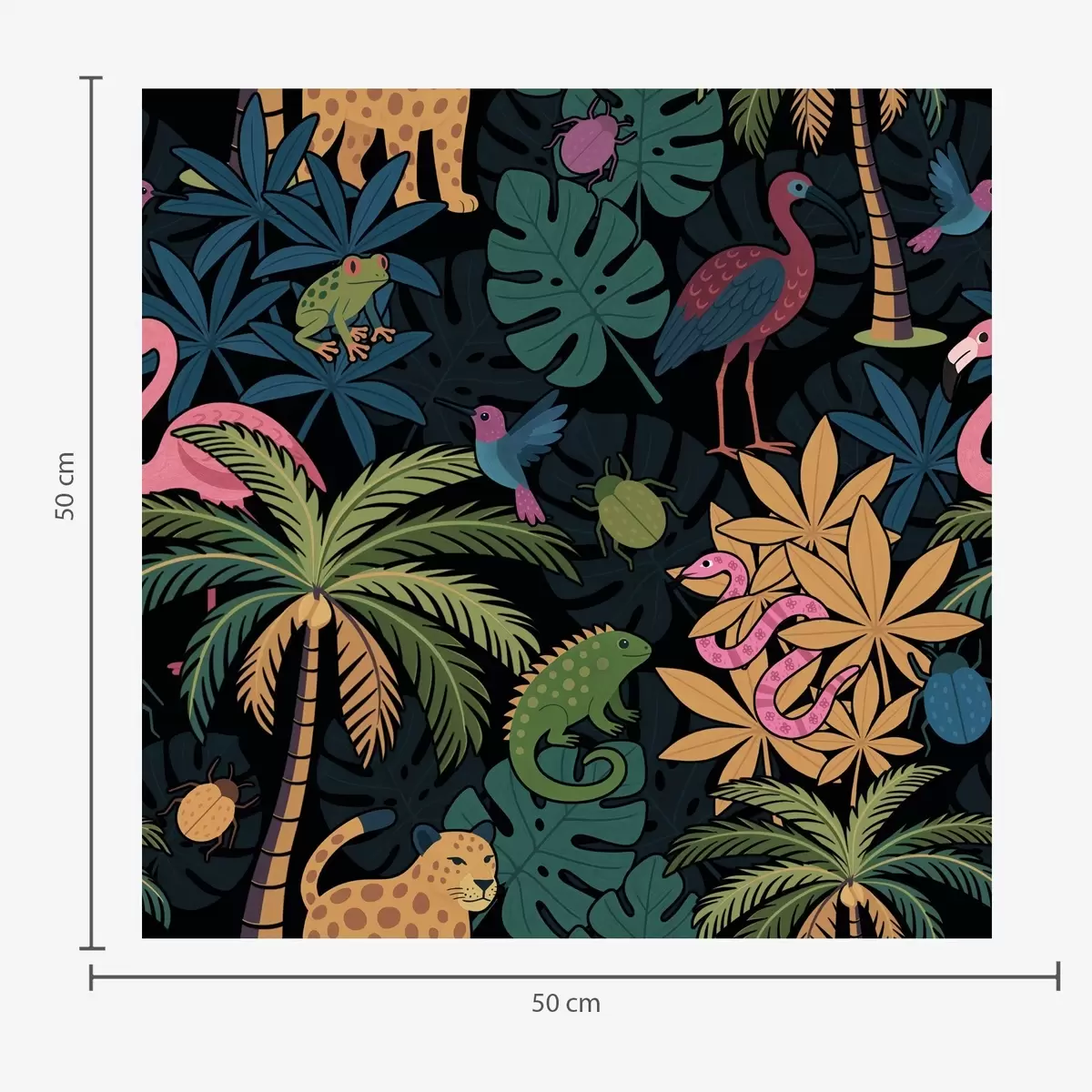 Tapeta Zářivá tropická zvířata mezi listovím na tmavém pozadí Nr. a00701