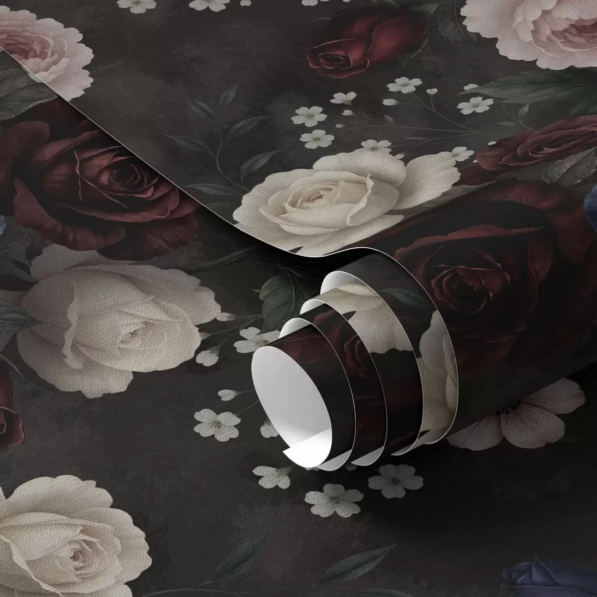 Tapeta Tmavé růže, sasanky a pivoňky na tmavém pozadí Nr. a00704