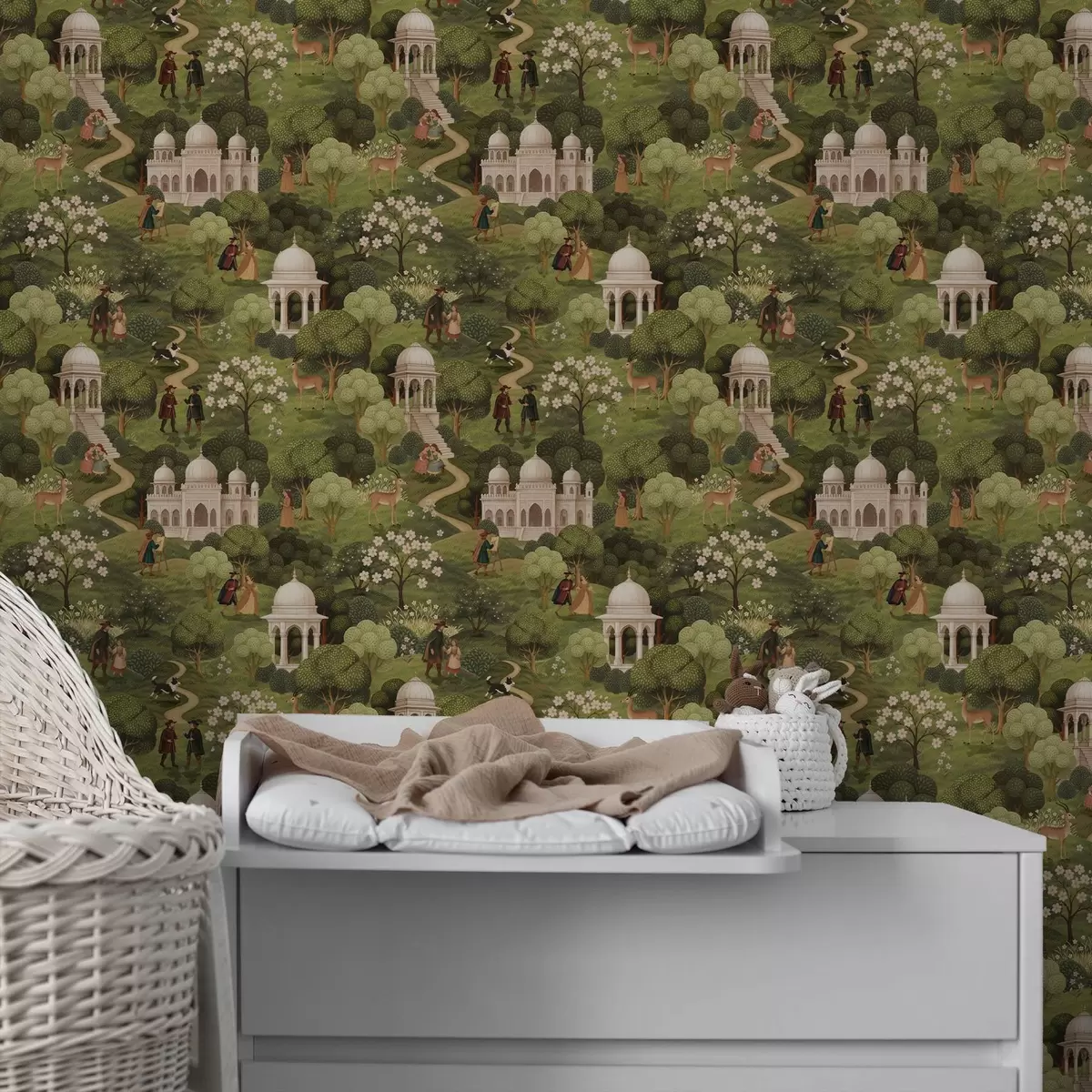 Tapeta Parková scéna se stromy a architekturou v krajinném stylu Nr. a00705