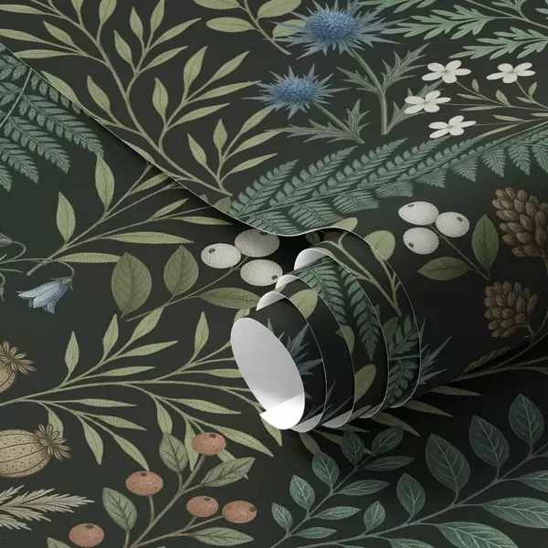 Tapeta Pole trávy, bobule a semena na tmavém pozadí Nr. a00706