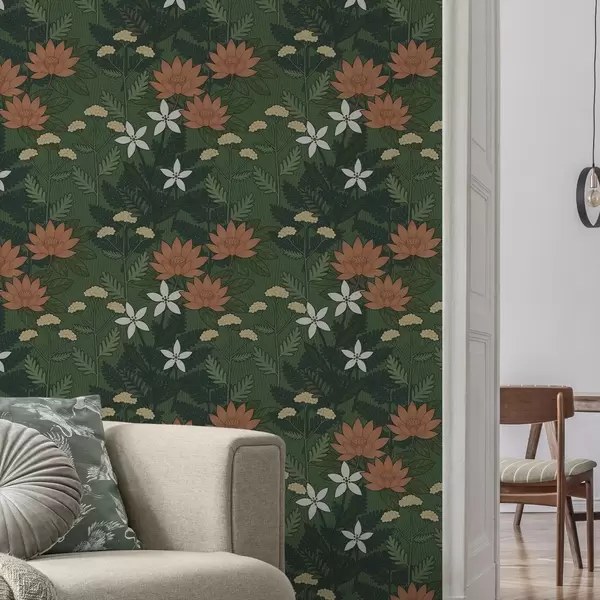 Tapeta Velké květy mezi zelenými listy, dekorativní kompozice Nr. a00708