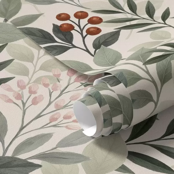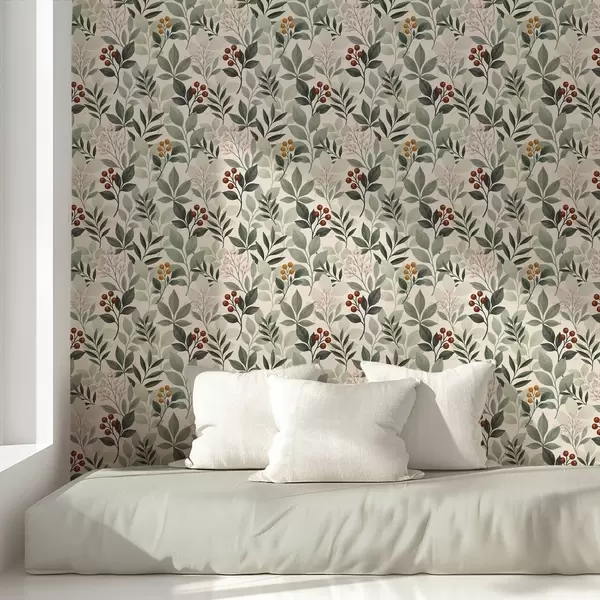 Tapeta Listy s bobulemi, světlé pozadí Nr. a00713
