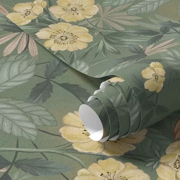 Tapeta Žluté květy uprostřed zelené listnaté textury Nr. a00718