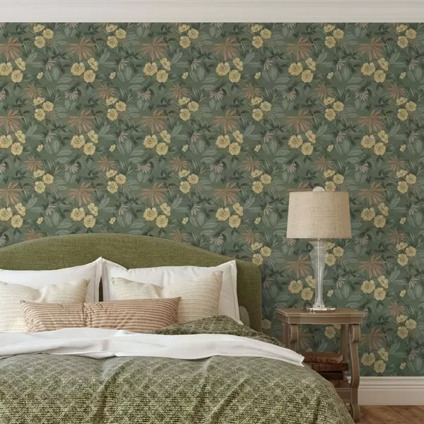Tapeta Žluté květy uprostřed zelené listnaté textury Nr. a00718