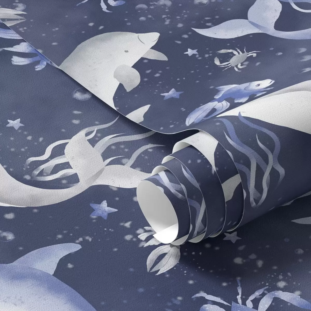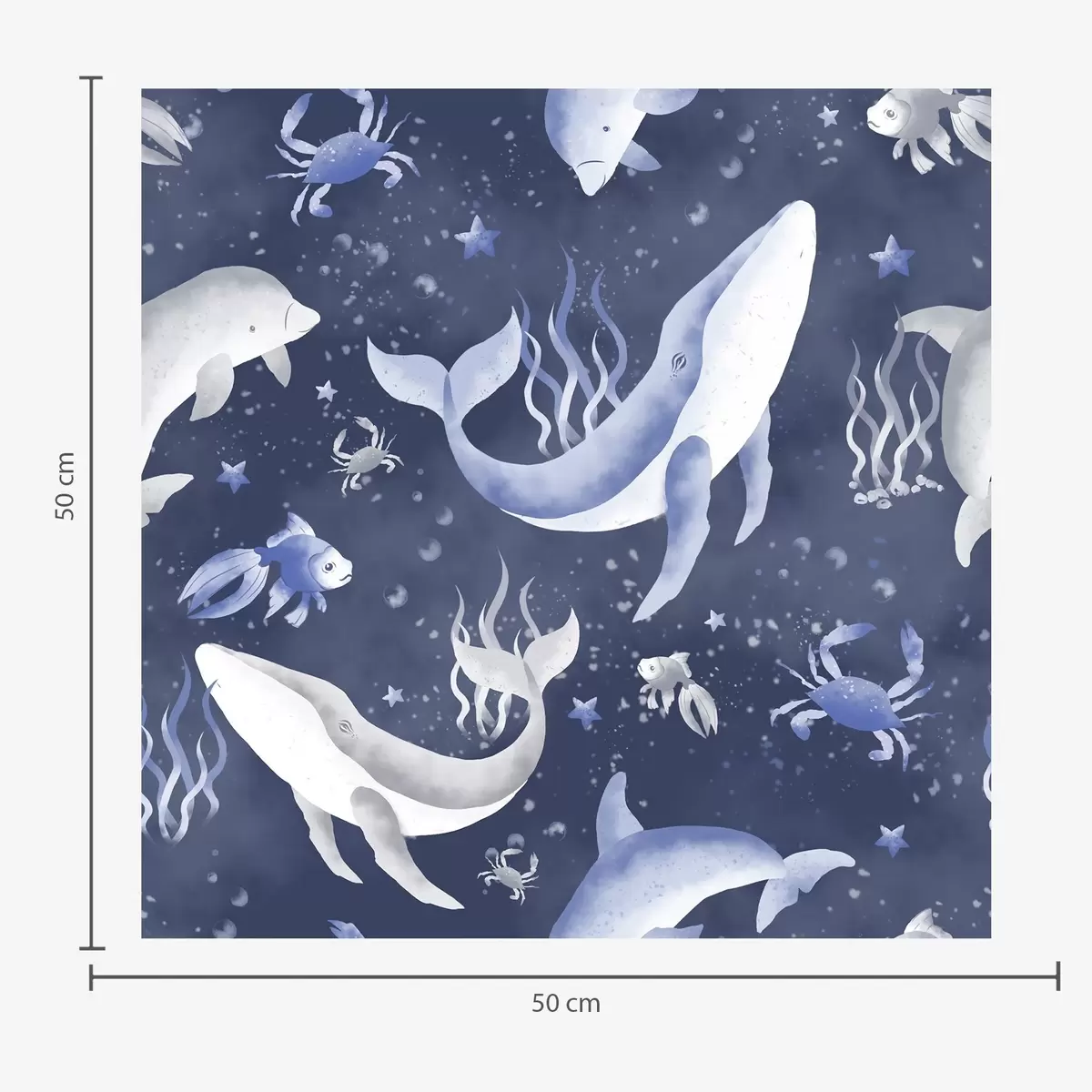 Tapeta Mořské velryby, delfíni a krabi na tmavě modrém pozadí Nr. a00720