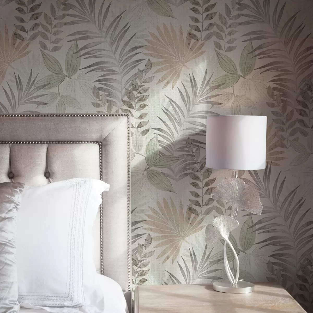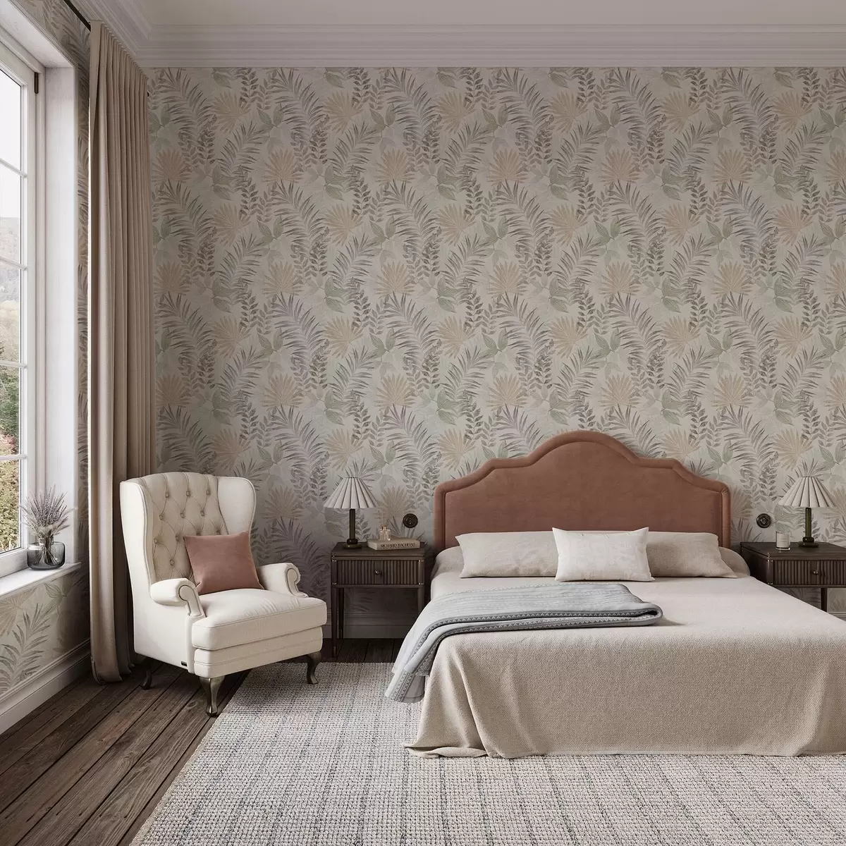 Tapeta Pastelové tropické listy na světlém pozadí, jemná textura Nr. a00725