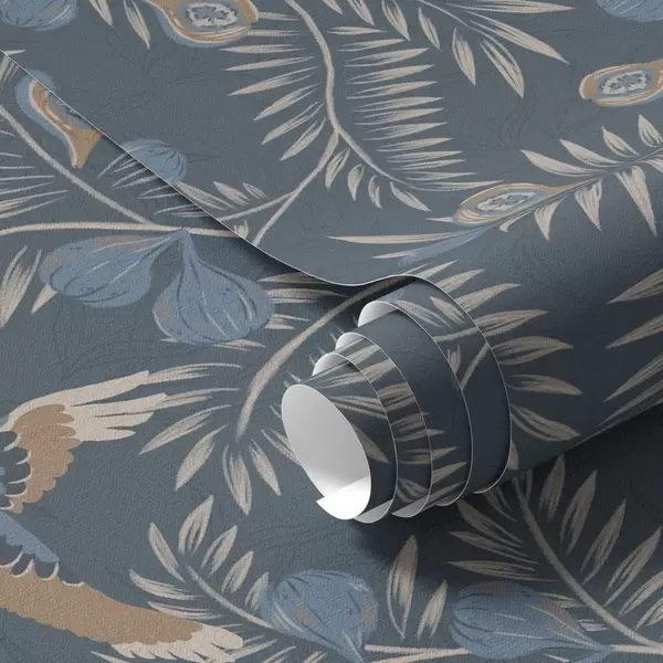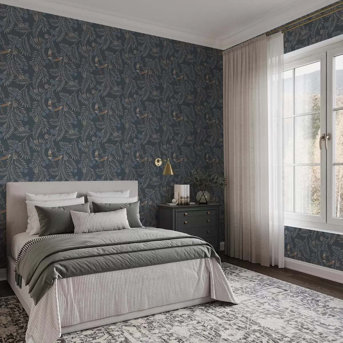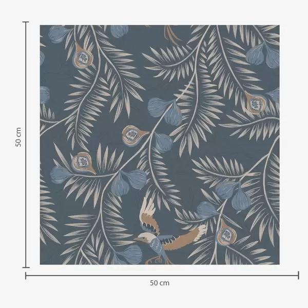 Tapeta Pták mezi modrými plody a palmovými listy, indigo Nr. a00726