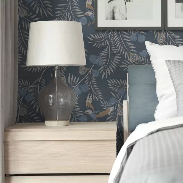 Tapeta Pták mezi modrými plody a palmovými listy, indigo Nr. a00726