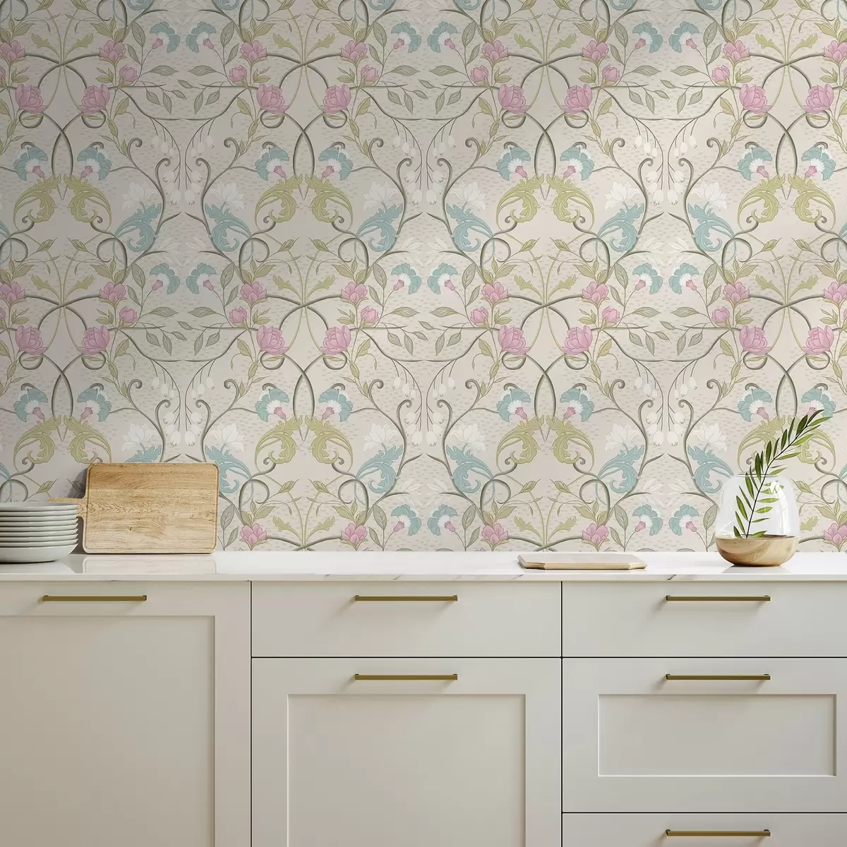Tapeta Elegantní květinový vzor s růžovými a modrými květy Nr. a00730