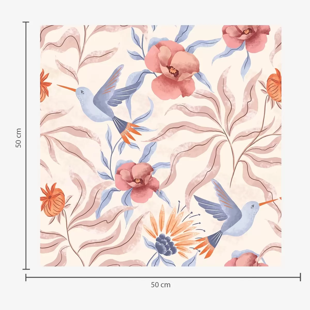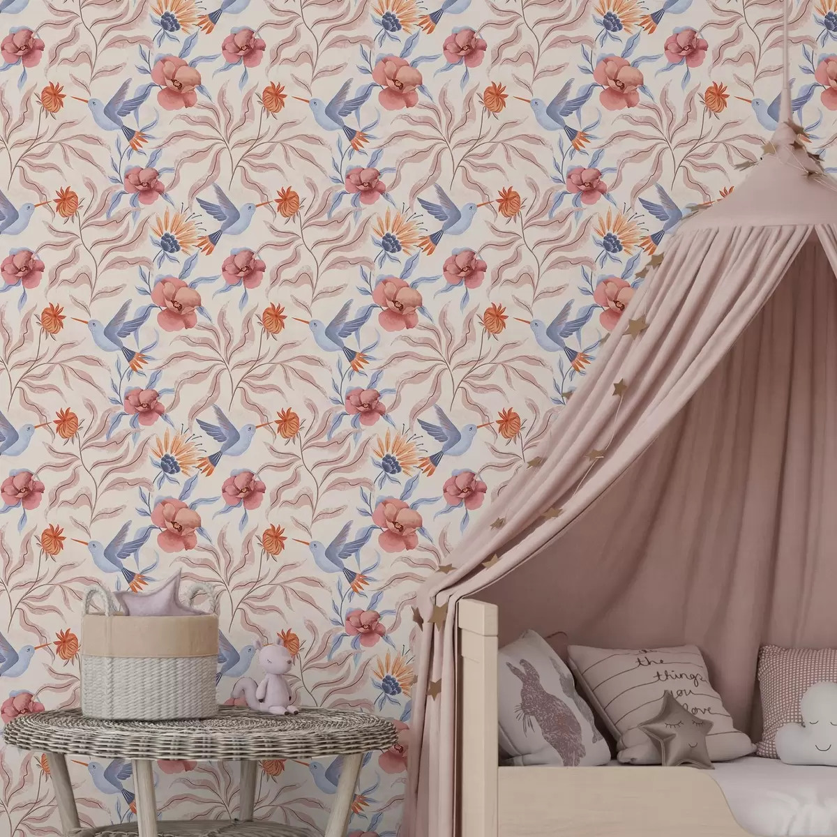 Tapeta Kolibříci mezi velkými květy v růžových a modrých tónech Nr. a00733