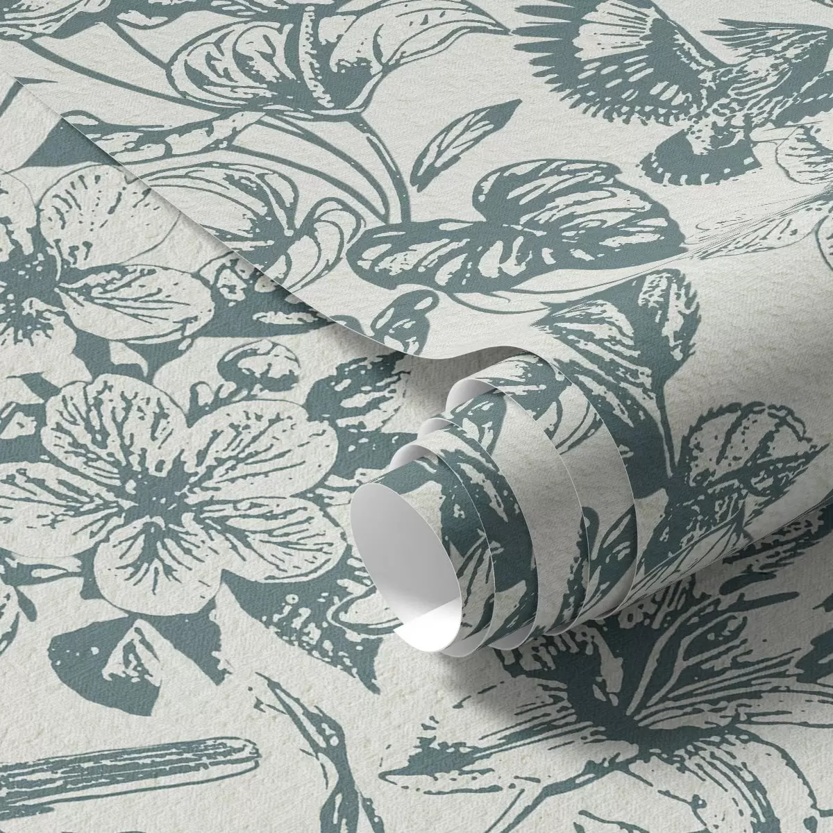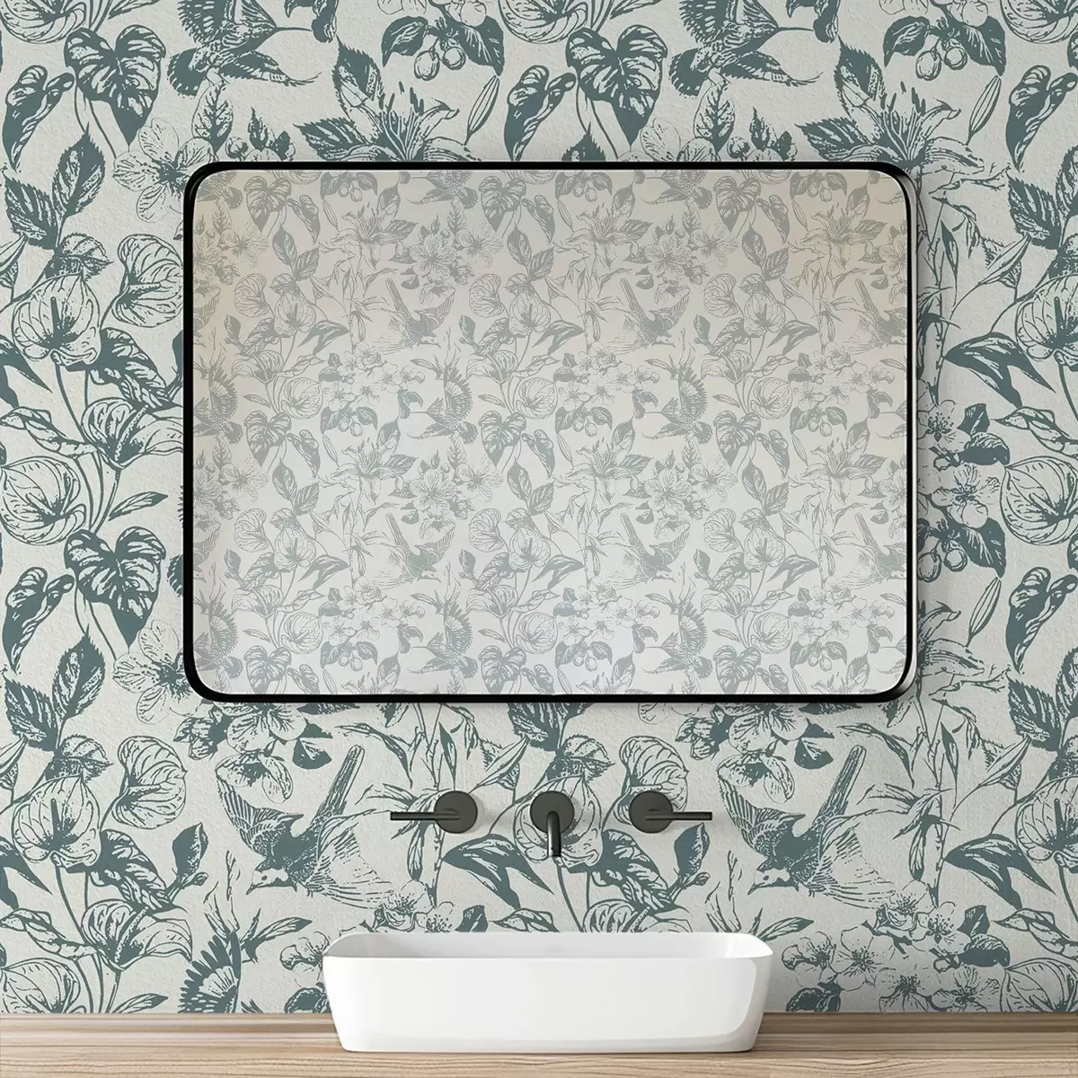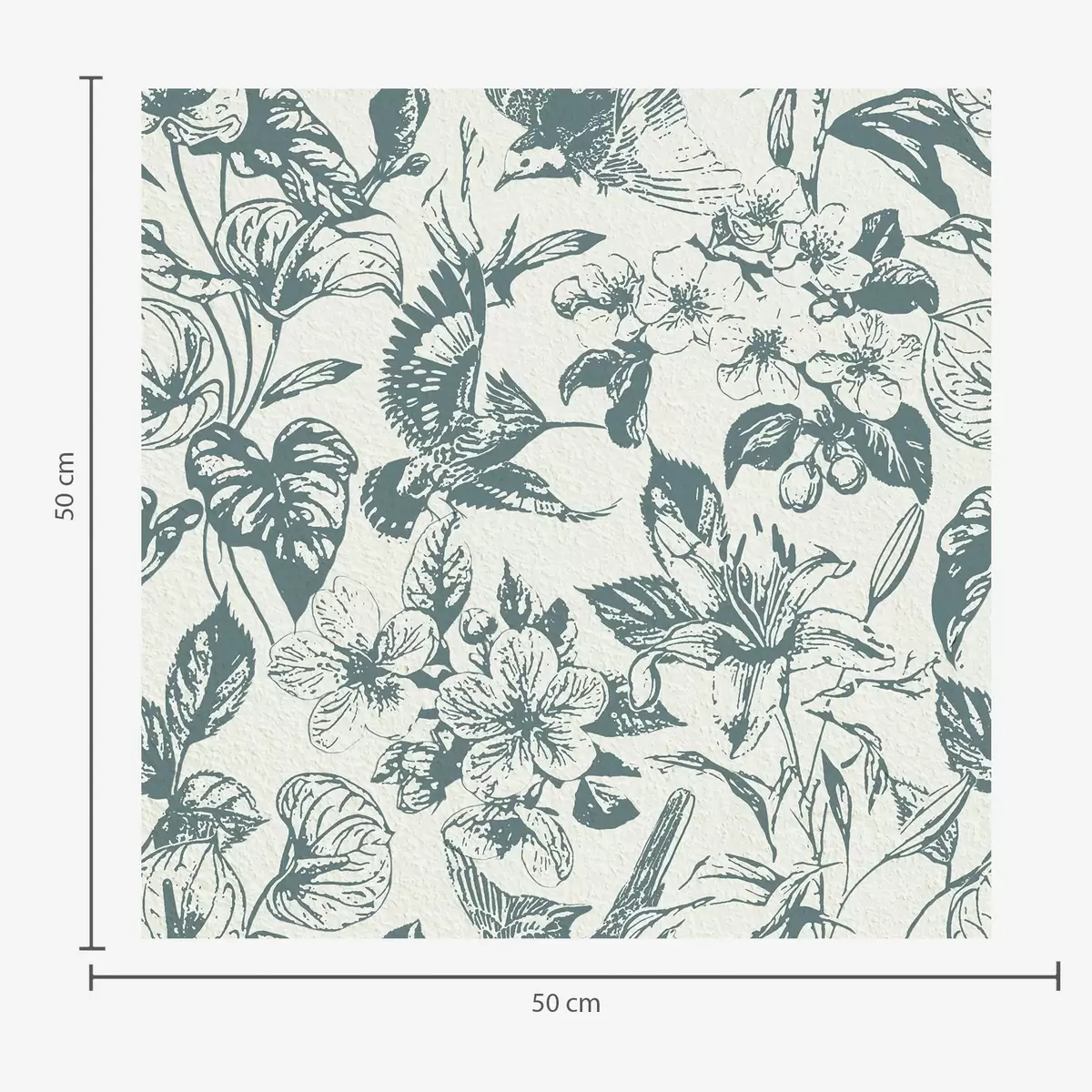 Tapeta Monochromatický květinový ornament s ptáky Nr. a00737