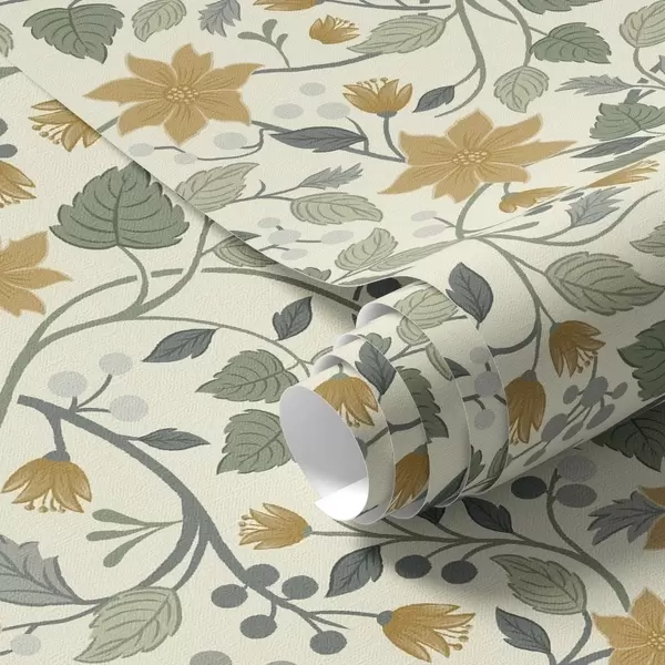 Tapeta Šplhající květinové větve se žlutými květy a bobulemi Nr. a00750