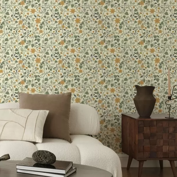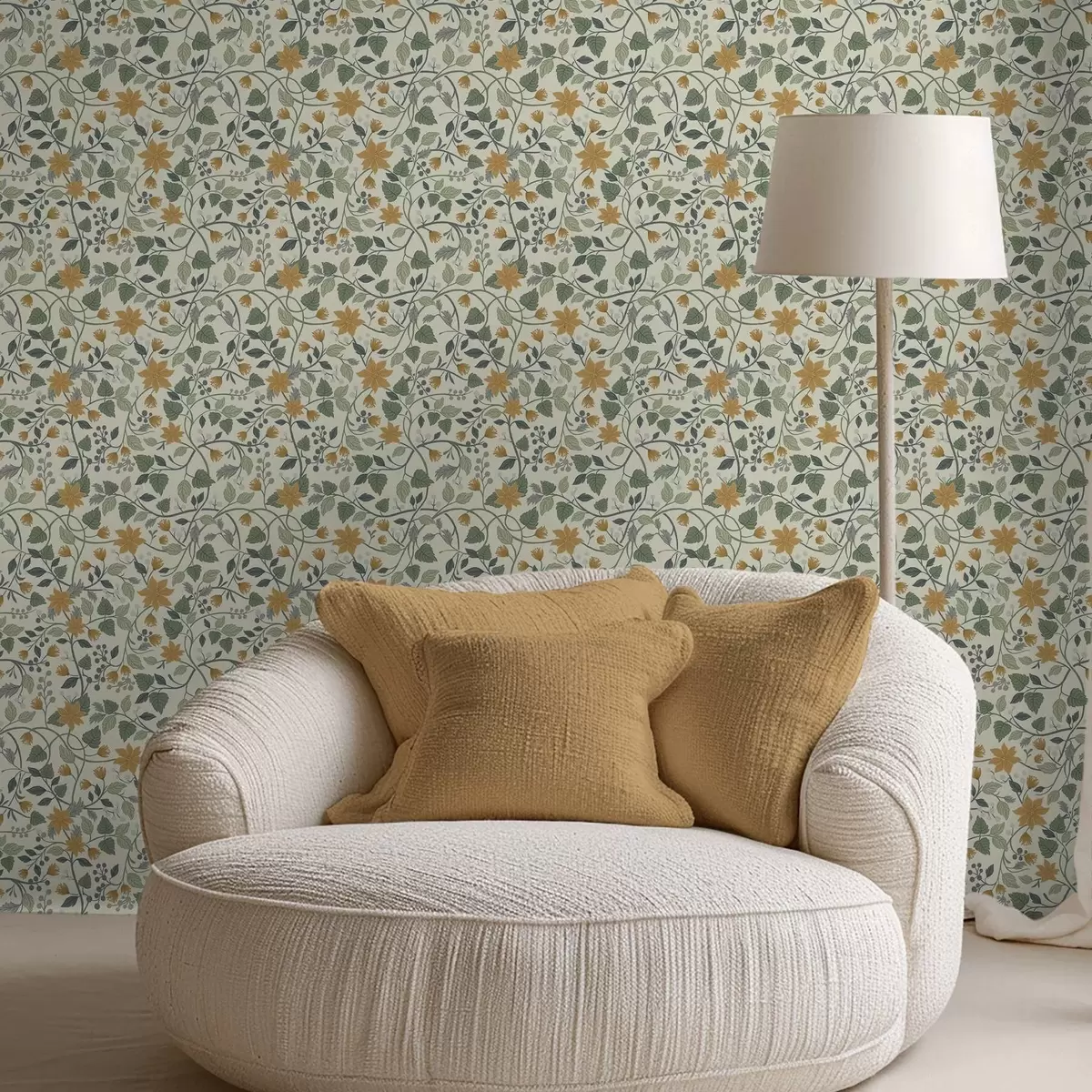 Tapeta Šplhající květinové větve se žlutými květy a bobulemi Nr. a00750