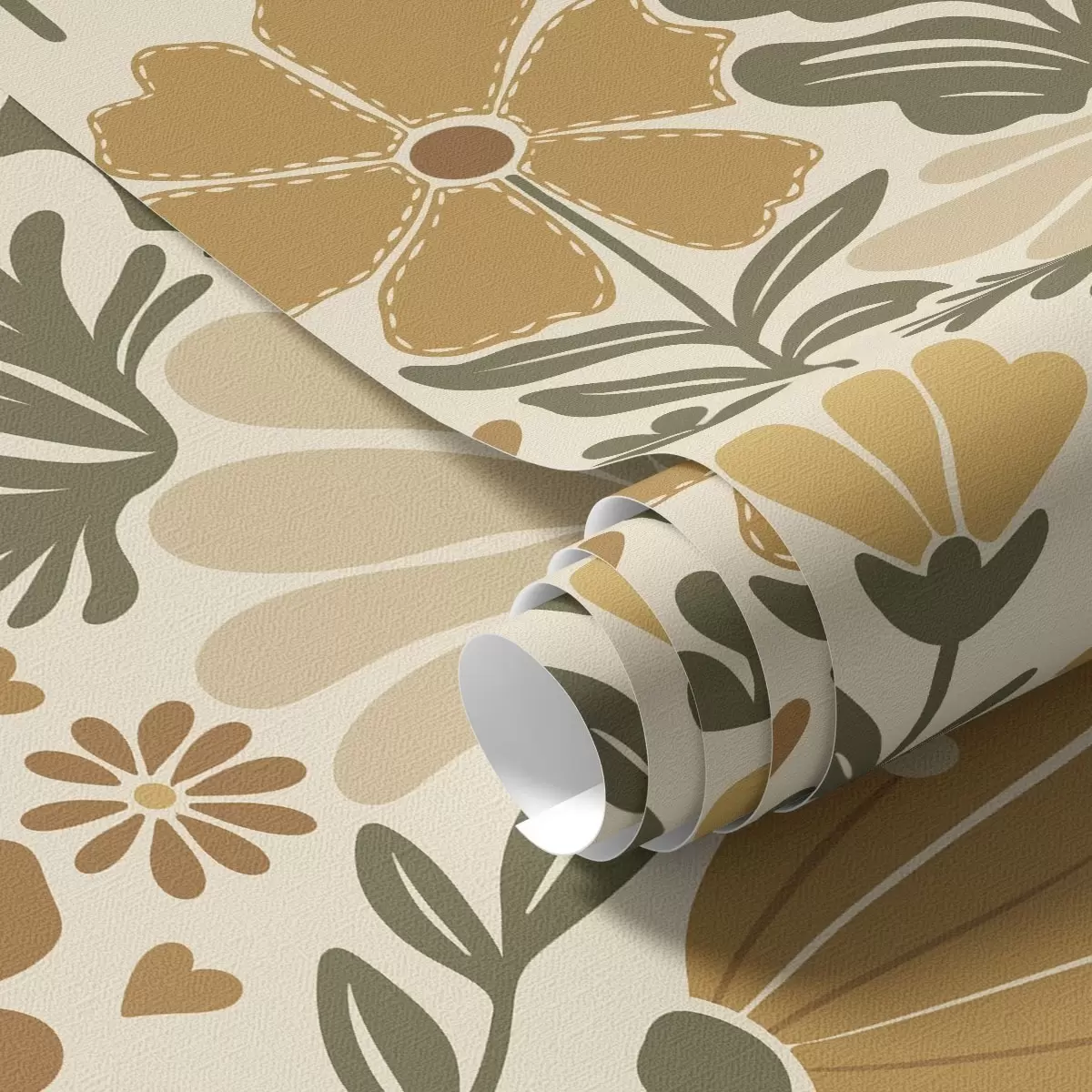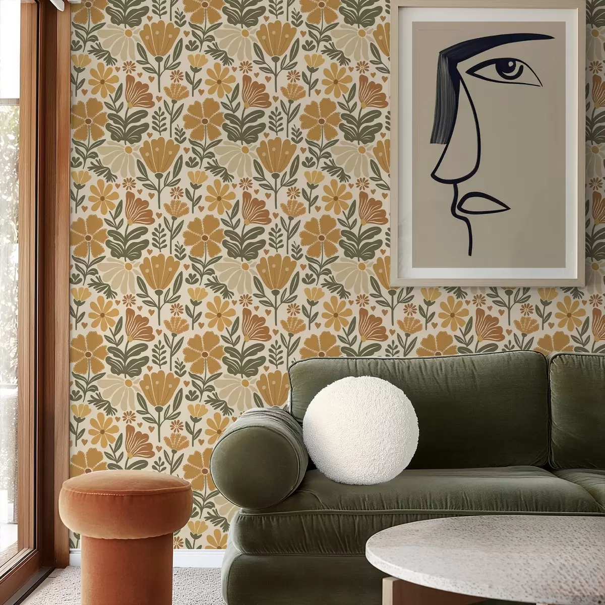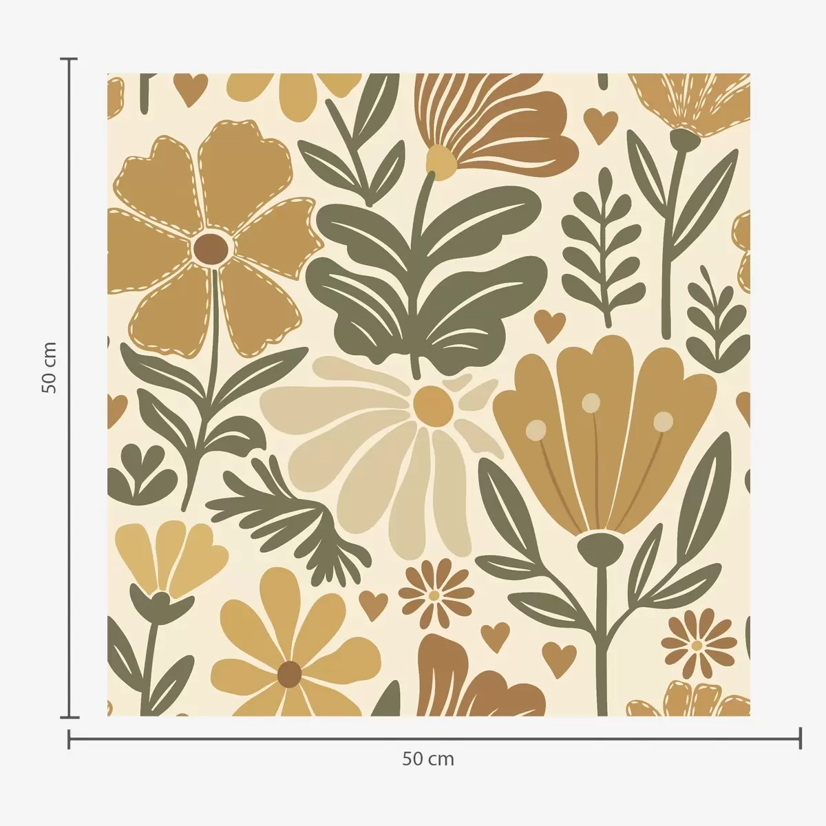 Tapeta Stylizované květiny v teplých tónech se srdíčky Nr. a00752