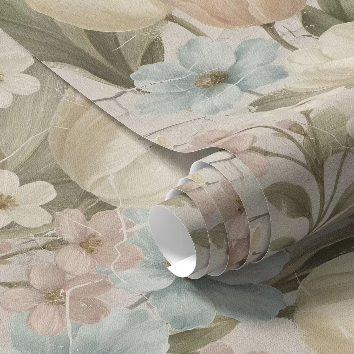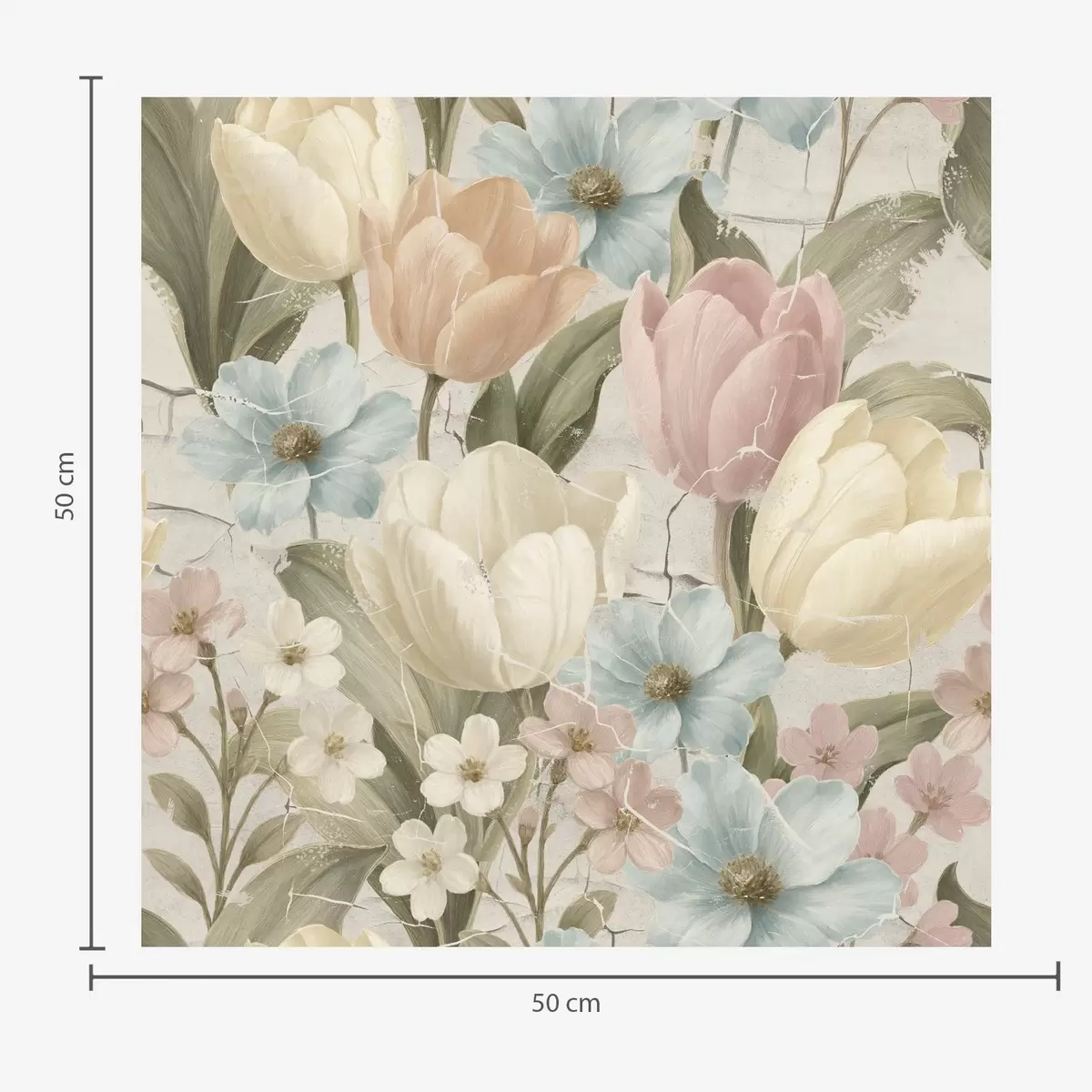 Tapeta Pastelové tulipány a květiny na světlém popraskaném pozadí Nr. a00756