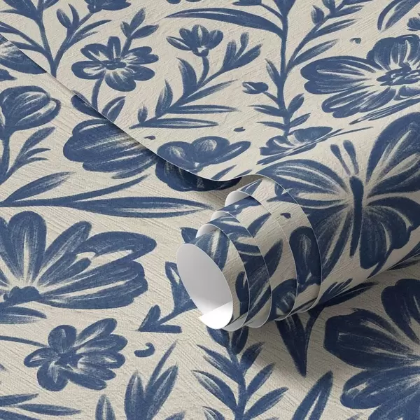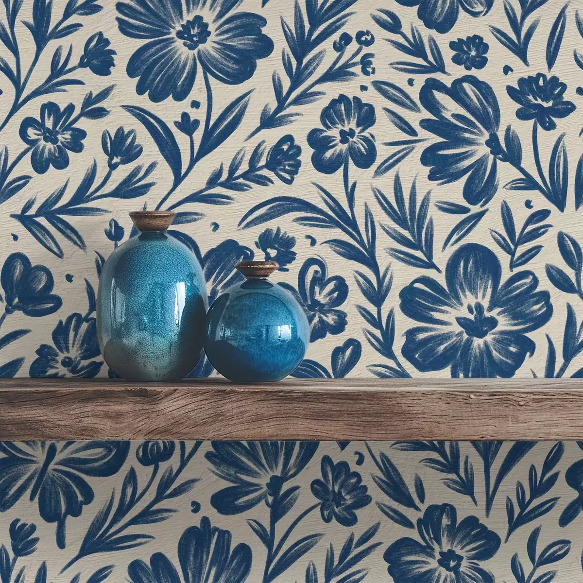 Tapeta Modrý květinový ornament s motýly Nr. a00758