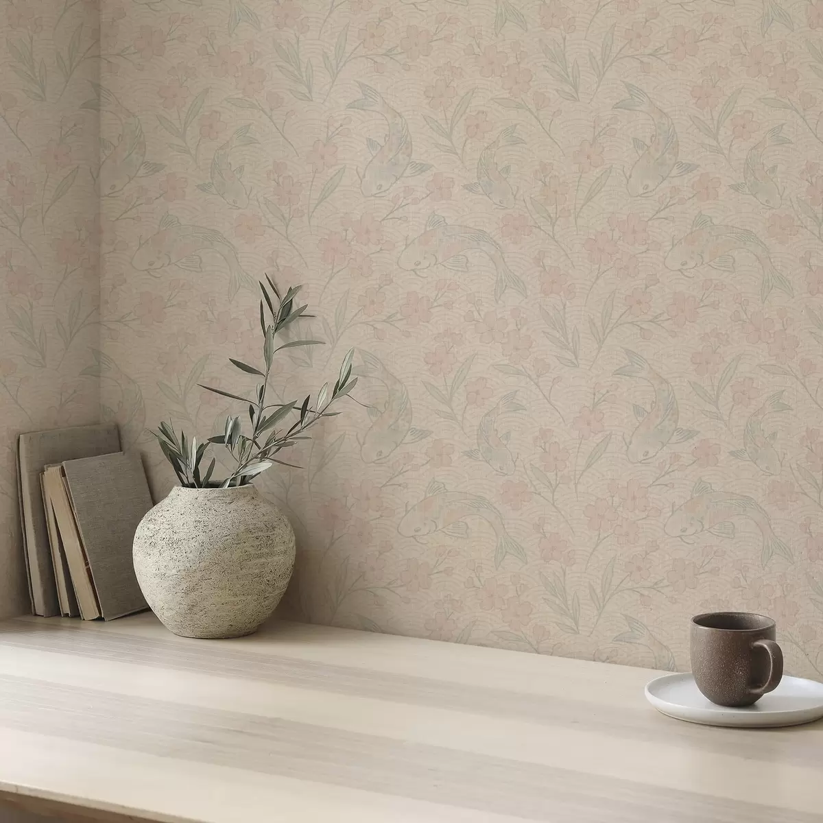Tapeta Kapři mezi květinami v jemných béžovo-růžových odstínech Nr. a00766