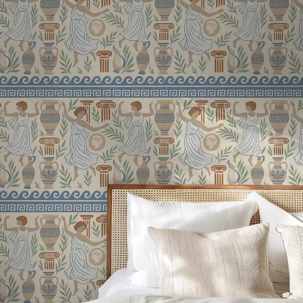 Tapeta Starověký řecký ornament s postavami, vázami a sloupy Nr. a00768