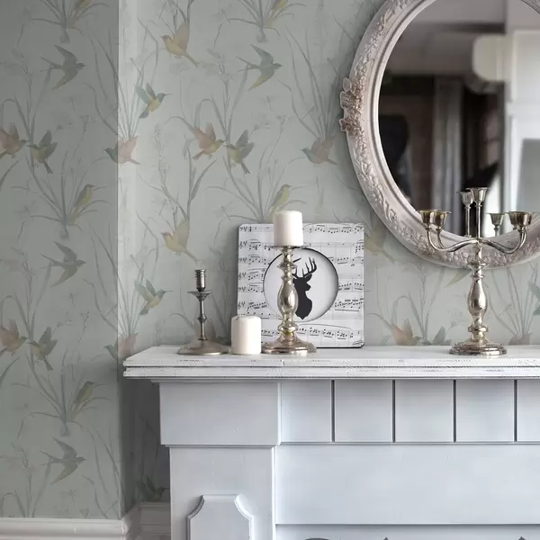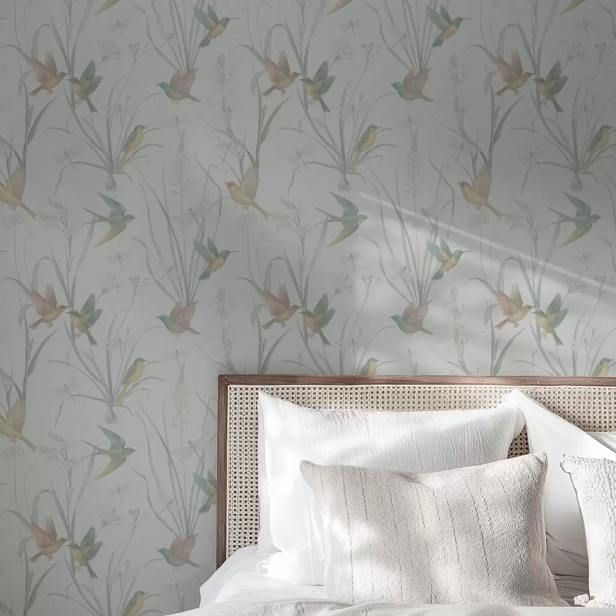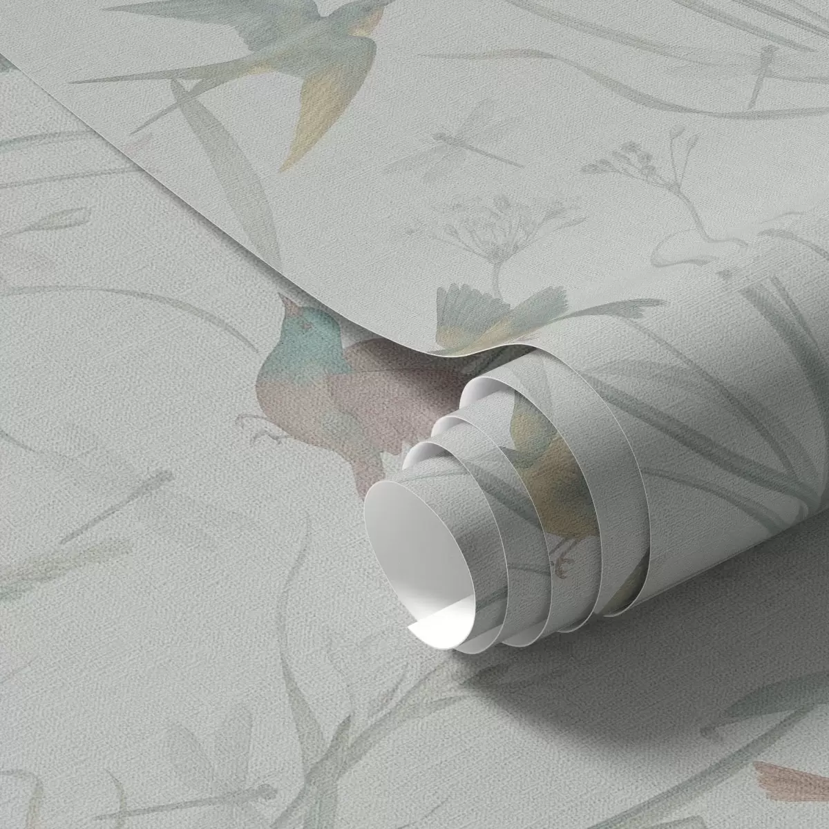 Tapeta Ptáci mezi travami na louce na světle šedém pozadí Nr. a00776v1