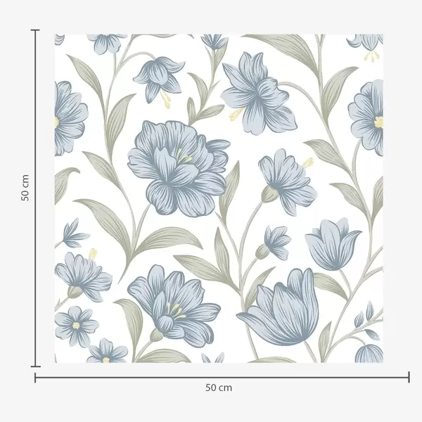 Tapeta Zaprášené modré květy s olivovými listy na bílém pozadí Nr. a00780