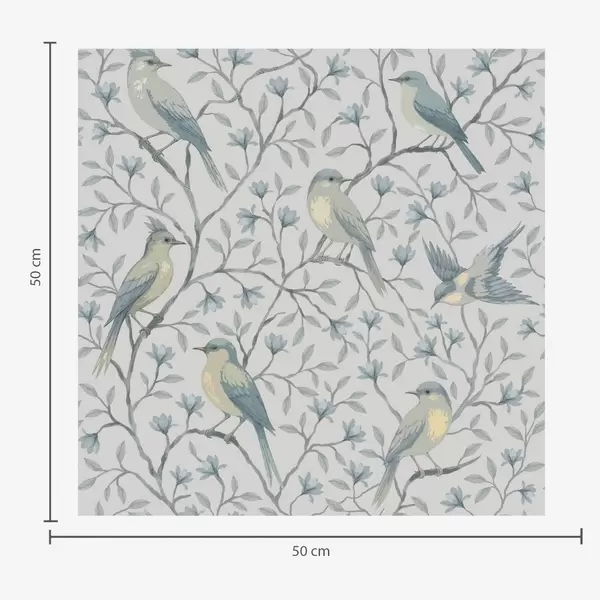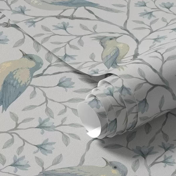 Tapeta Ptáci na větvích, šedo-modrá barevná kombinace Nr. a00782