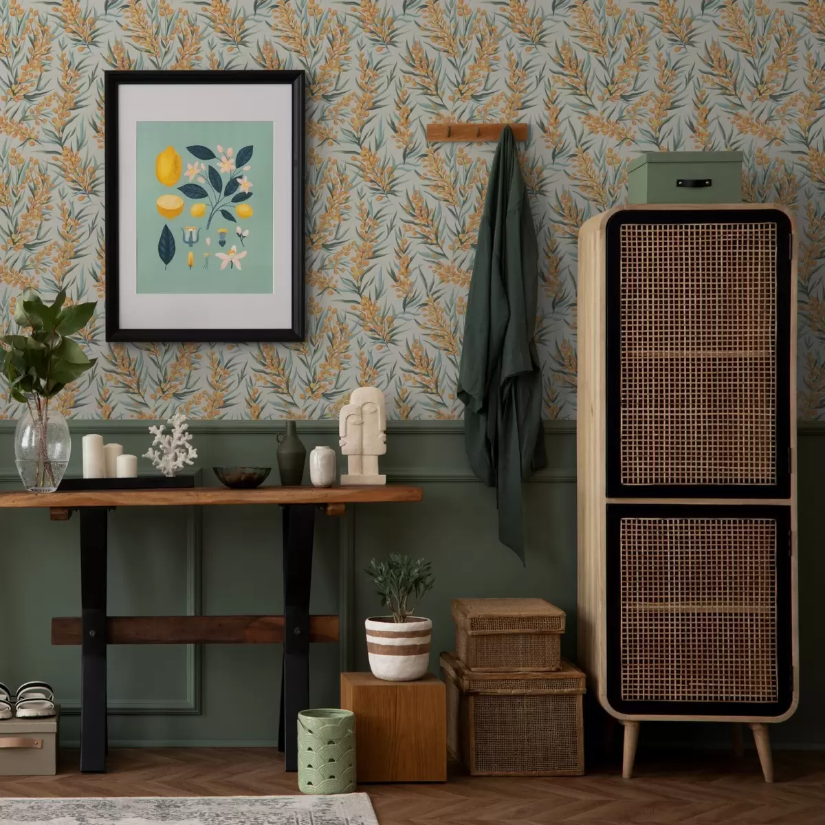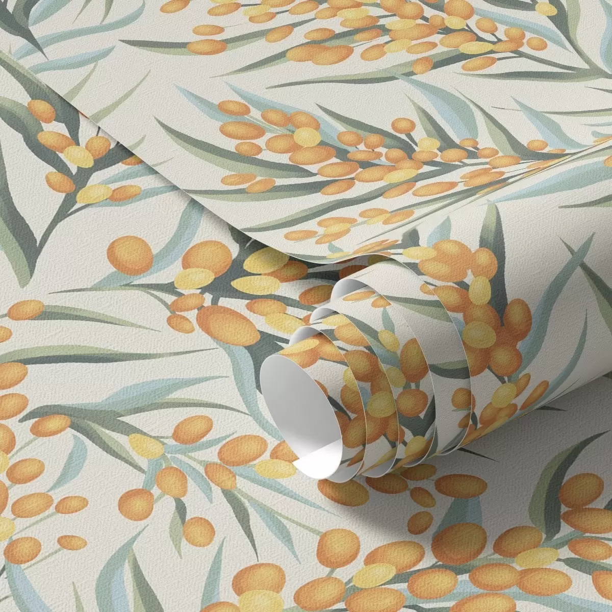 Tapeta Větve rakytníku s oranžovými bobulemi, světlé pozadí Nr. a00792