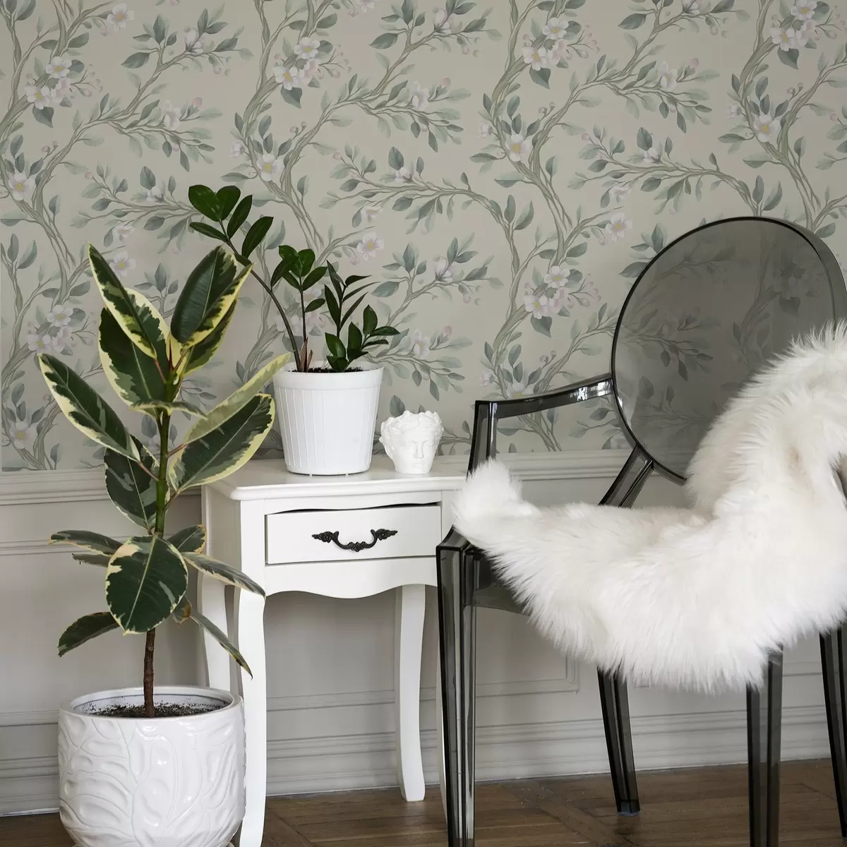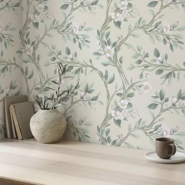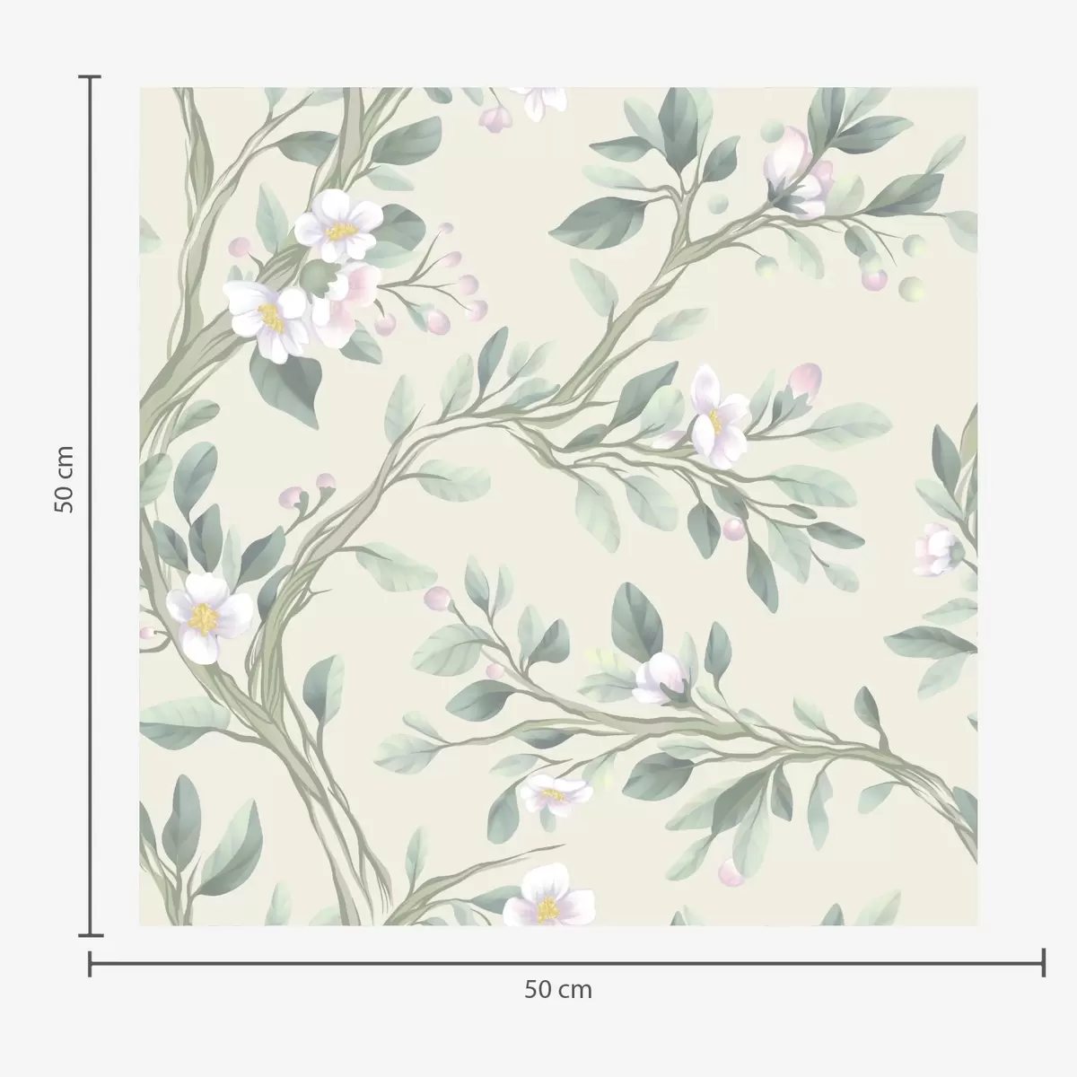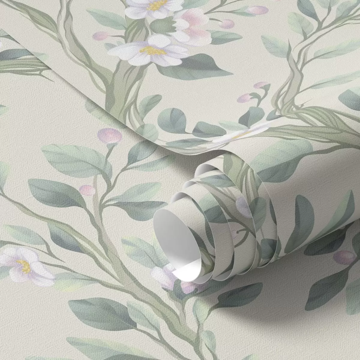 Tapeta Jemné rozkvetlé větve na krémovém pozadí, pastelové barvy Nr. a00793