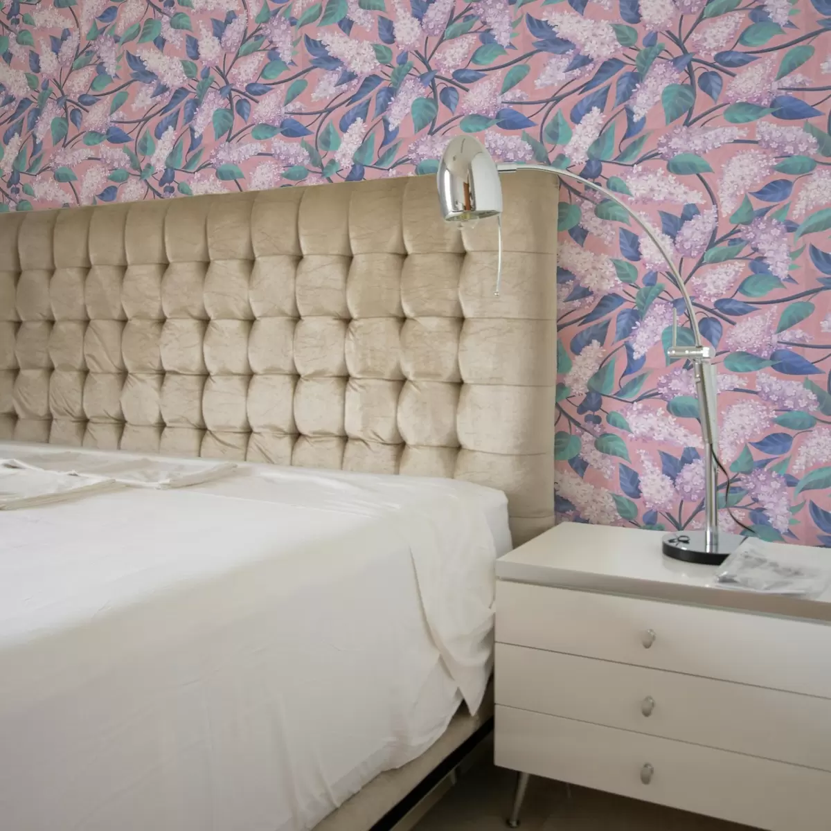 Tapeta Jemné lila květy na růžovém pozadí, jarní nálada Nr. a00797