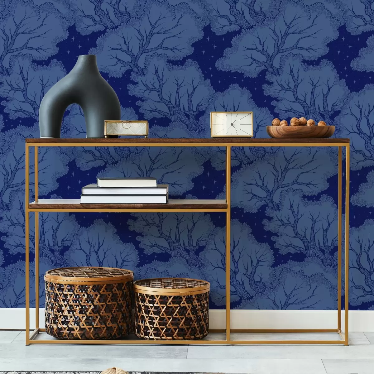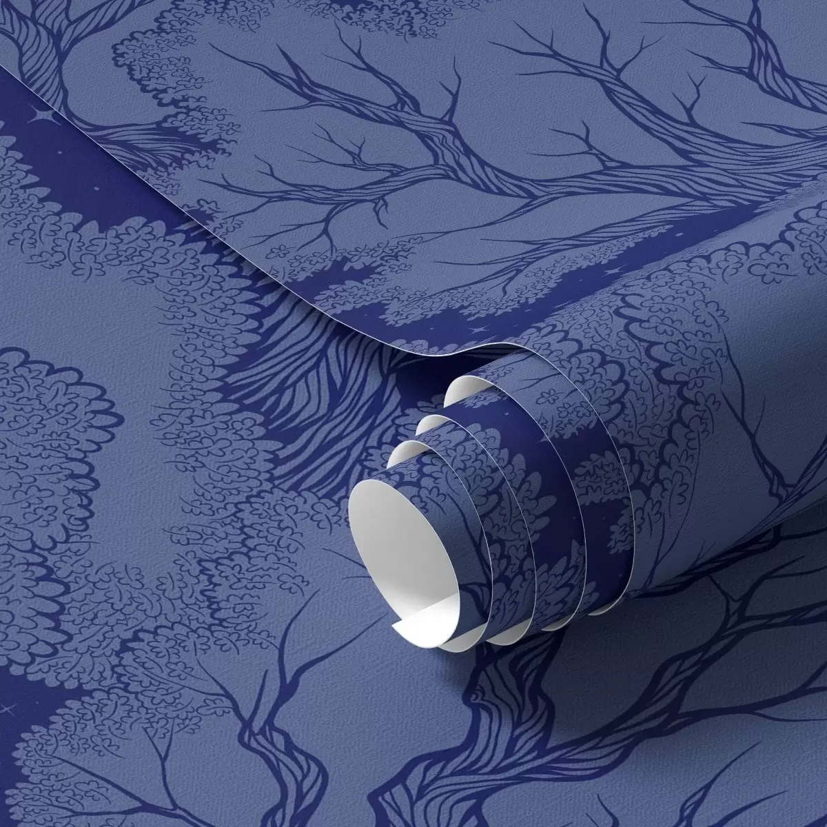 Tapeta Siluety stromů pod hvězdnou oblohou v odstínech modré barvy Nr. a00798
