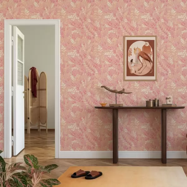 Tapeta Jemné růžovo-broskvové listy s jemným barevným leskem Nr. a00799