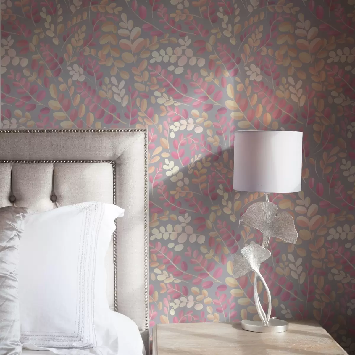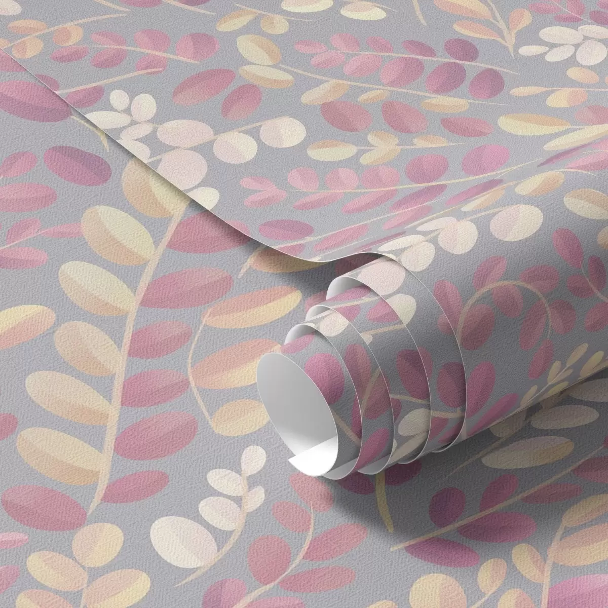 Tapeta Pastelové větve s růžovo-broskvovým olistěním na šedém pozadí Nr. a00799v1