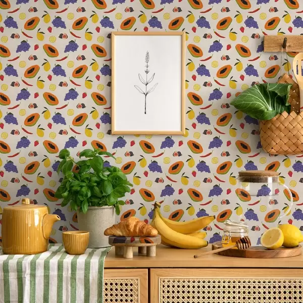 Tapeta Papája, hrozny a citrony — pestrá ovocná směs Nr. a00803