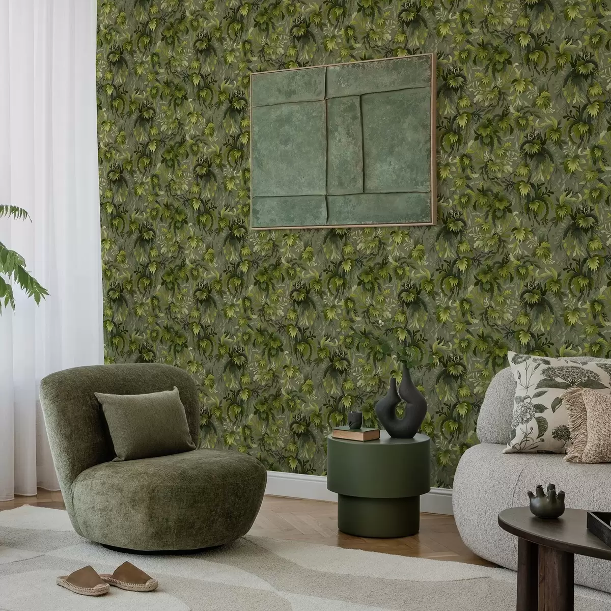 Tapeta Husté zelené listy na šedozeleném pozadí Nr. a00805v1