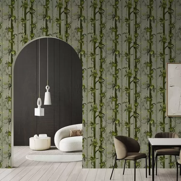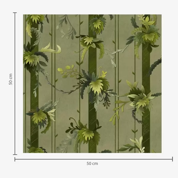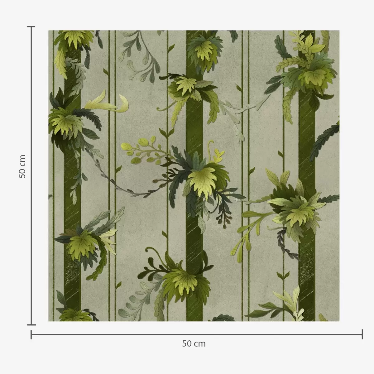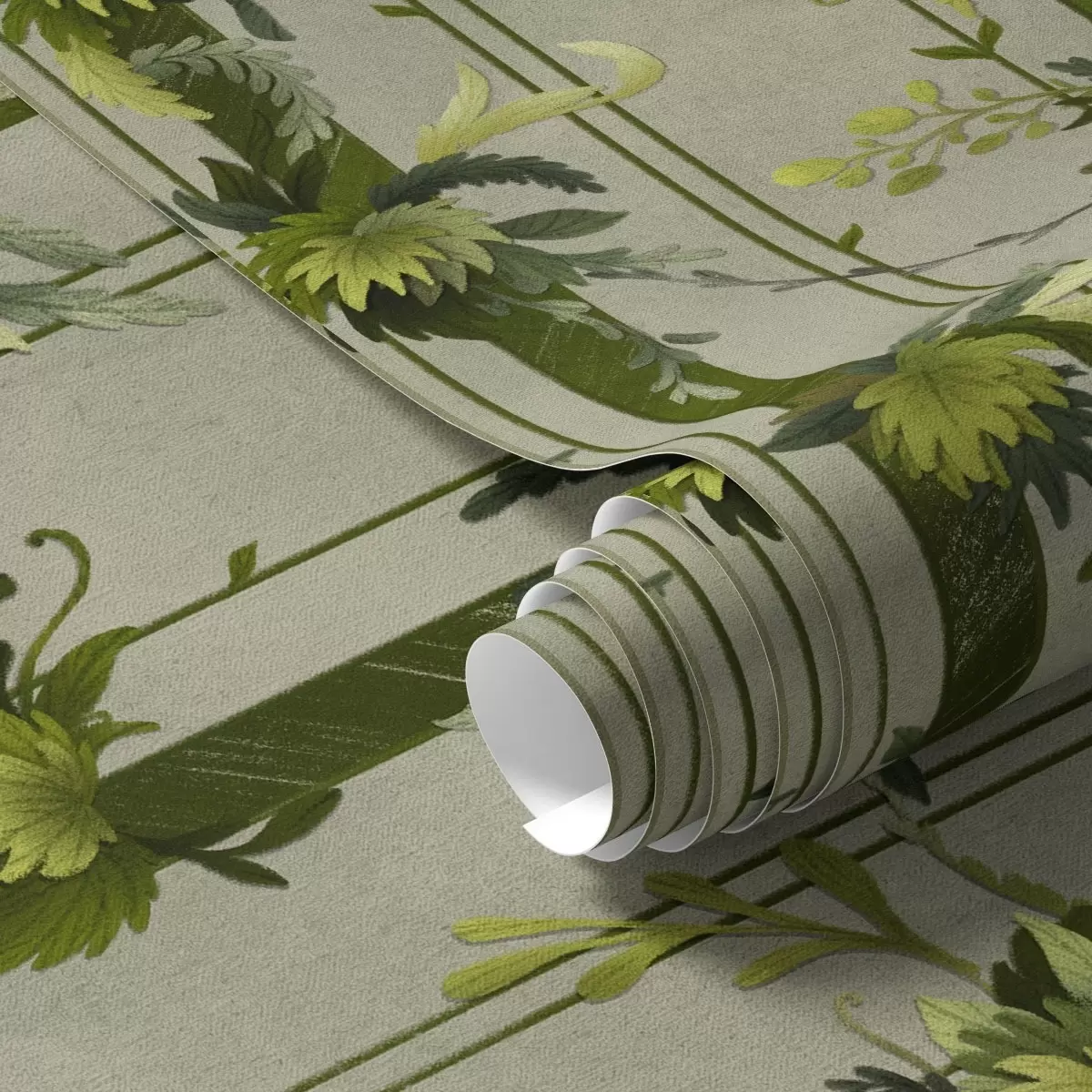 Tapeta Zelené listy ve svislých pruzích na šedém pozadí Nr. a00807v1