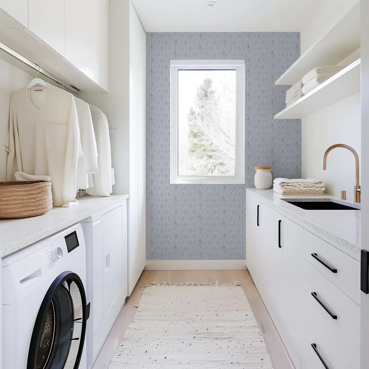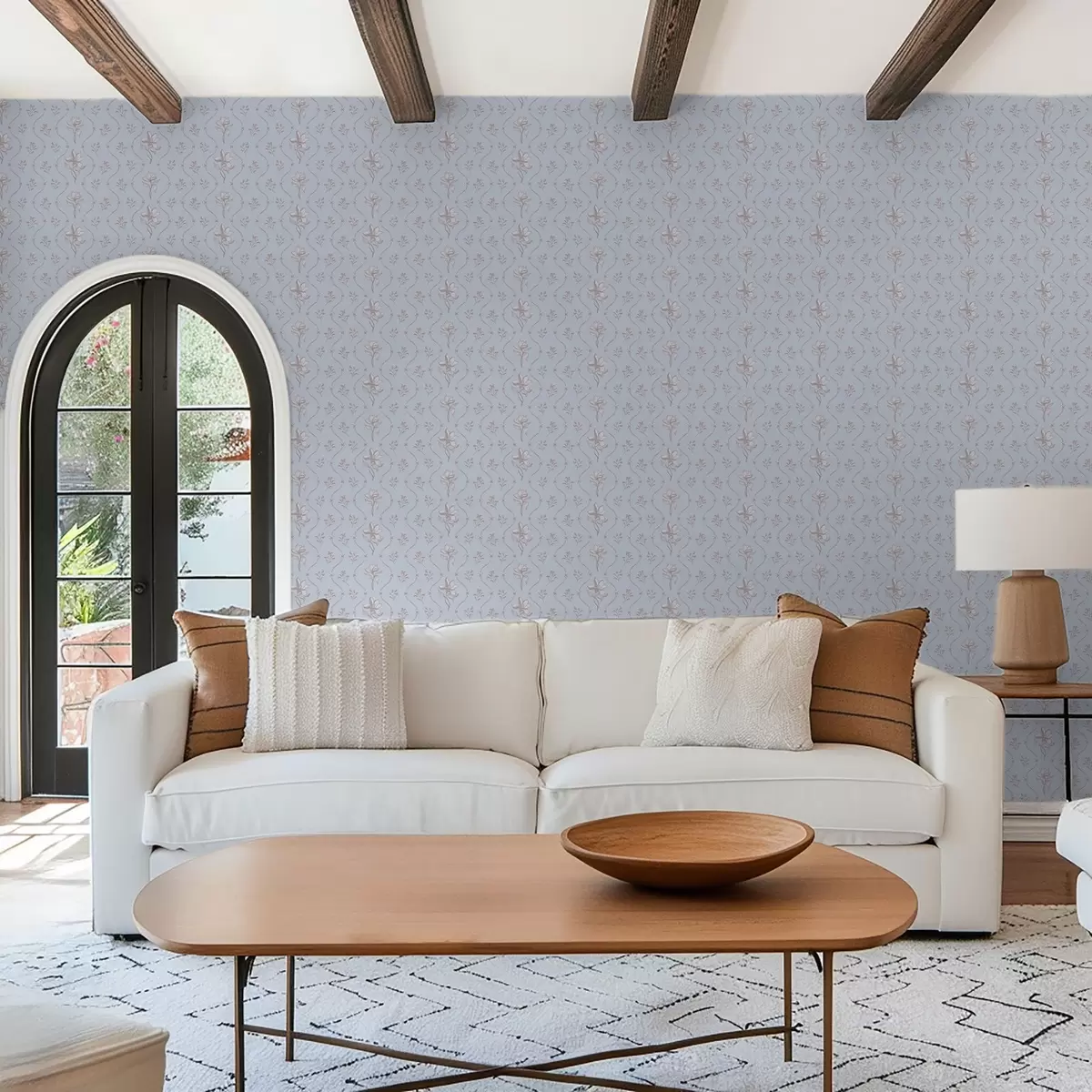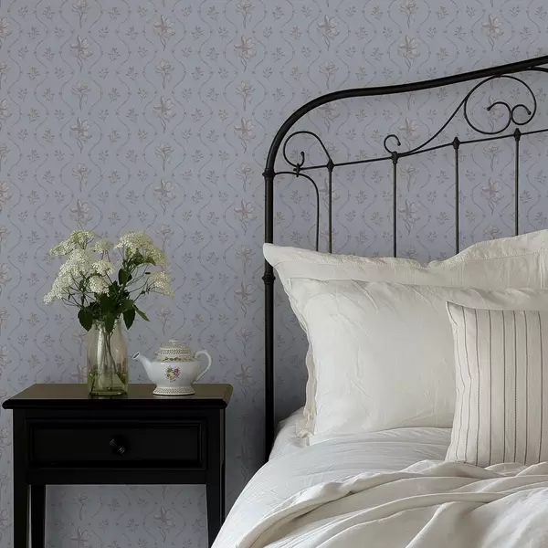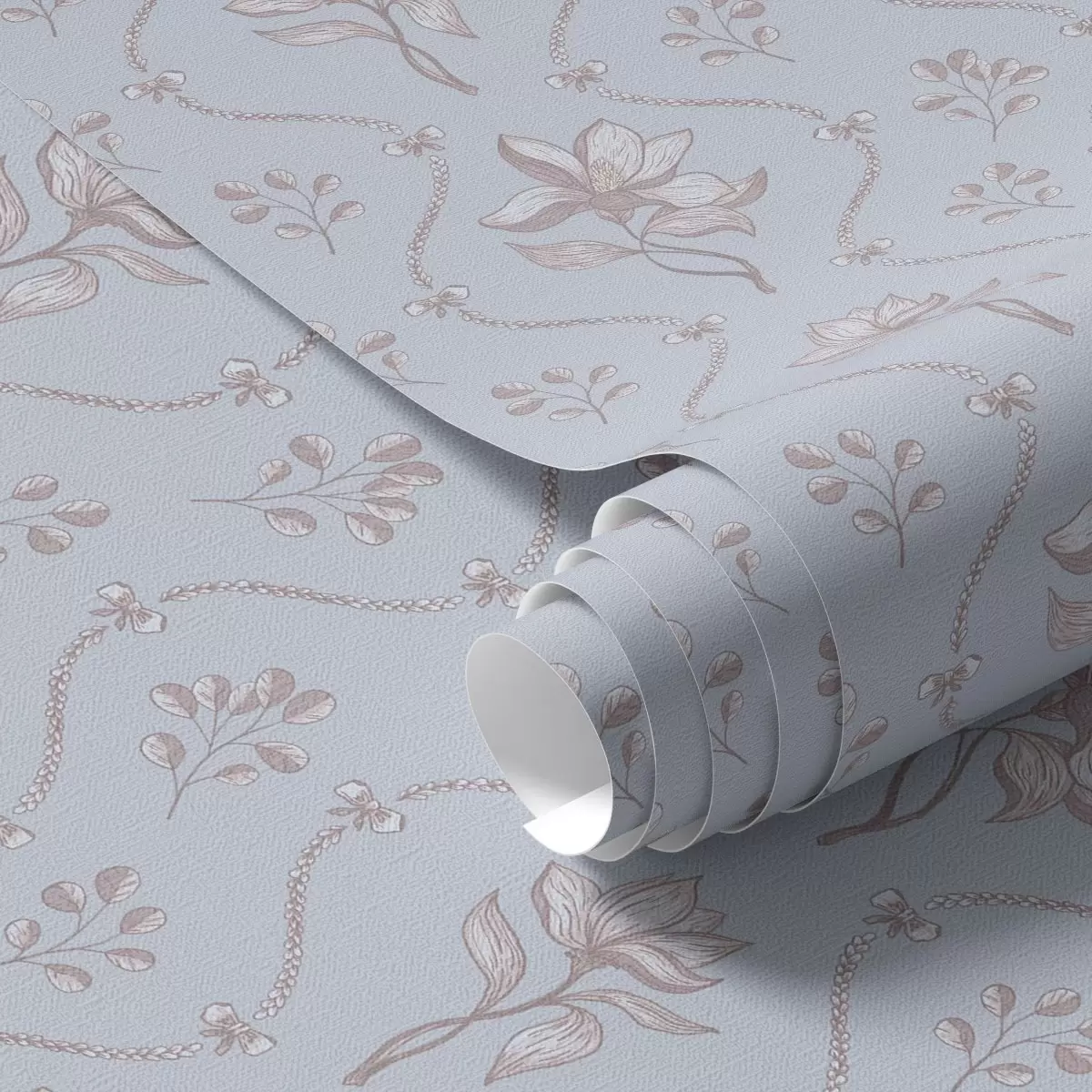 Tapeta Malé květy a stužky v jemných modrých tónech Nr. a00808v1