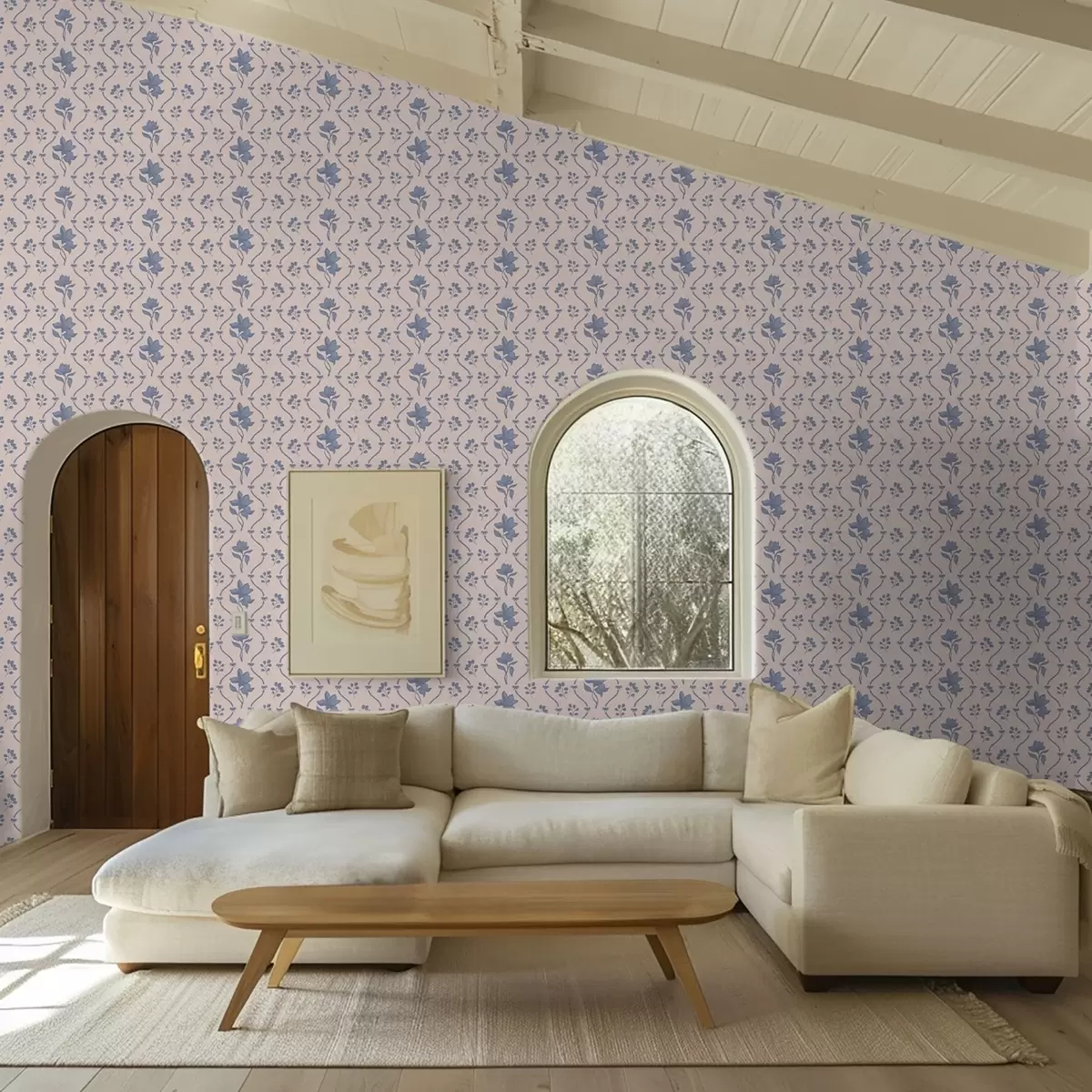 Tapeta Malé květiny a stužky v modrých a růžových odstínech Nr. a00808v3