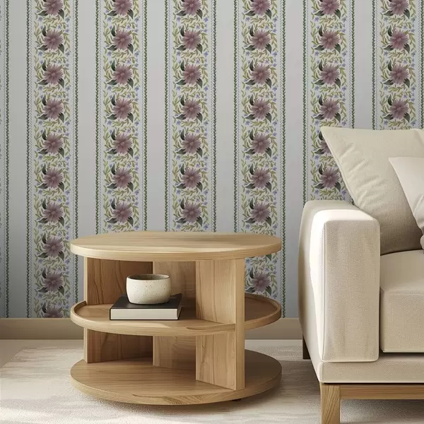 Tapeta Vertikální květinové pruhy v lila-modrých tónech Nr. a00809