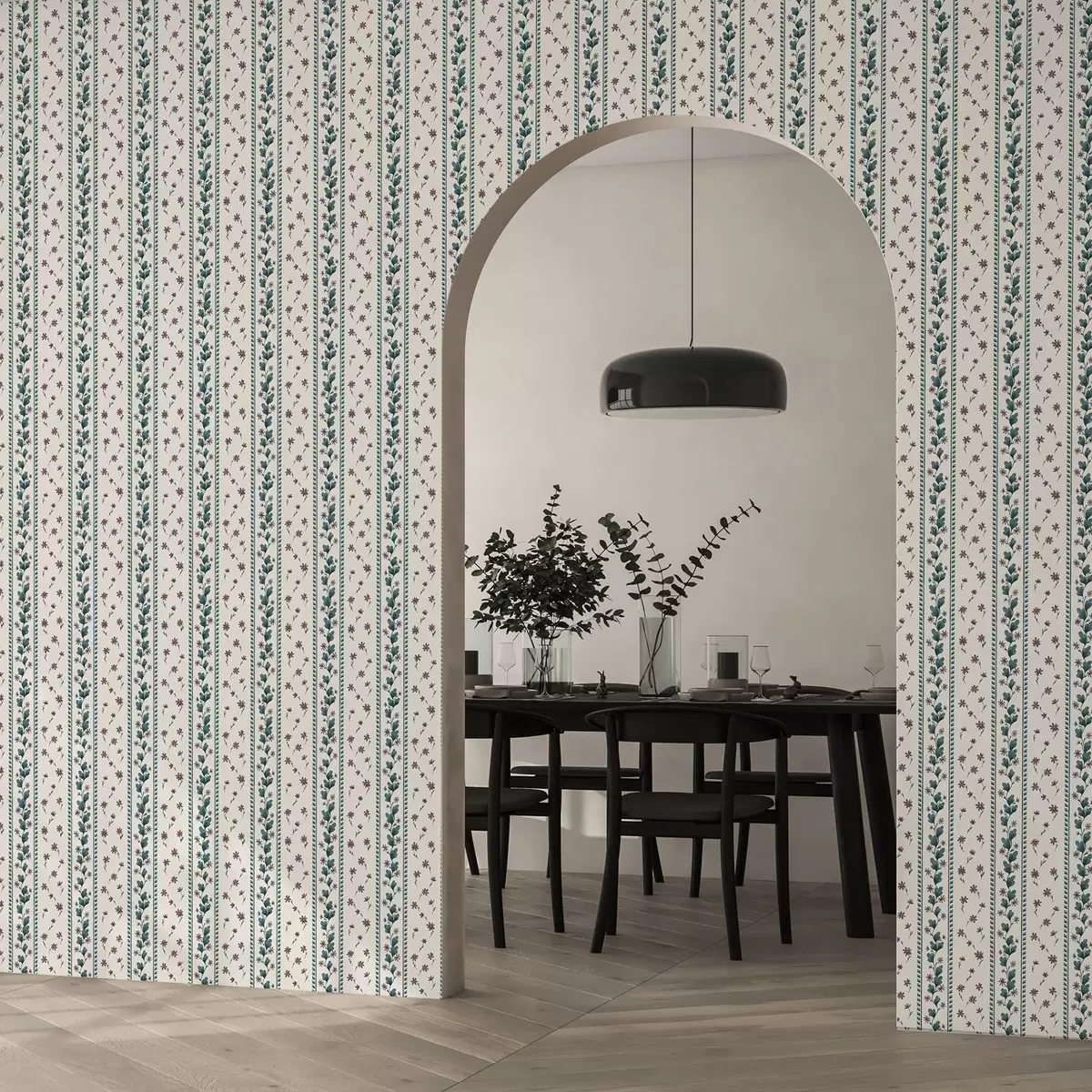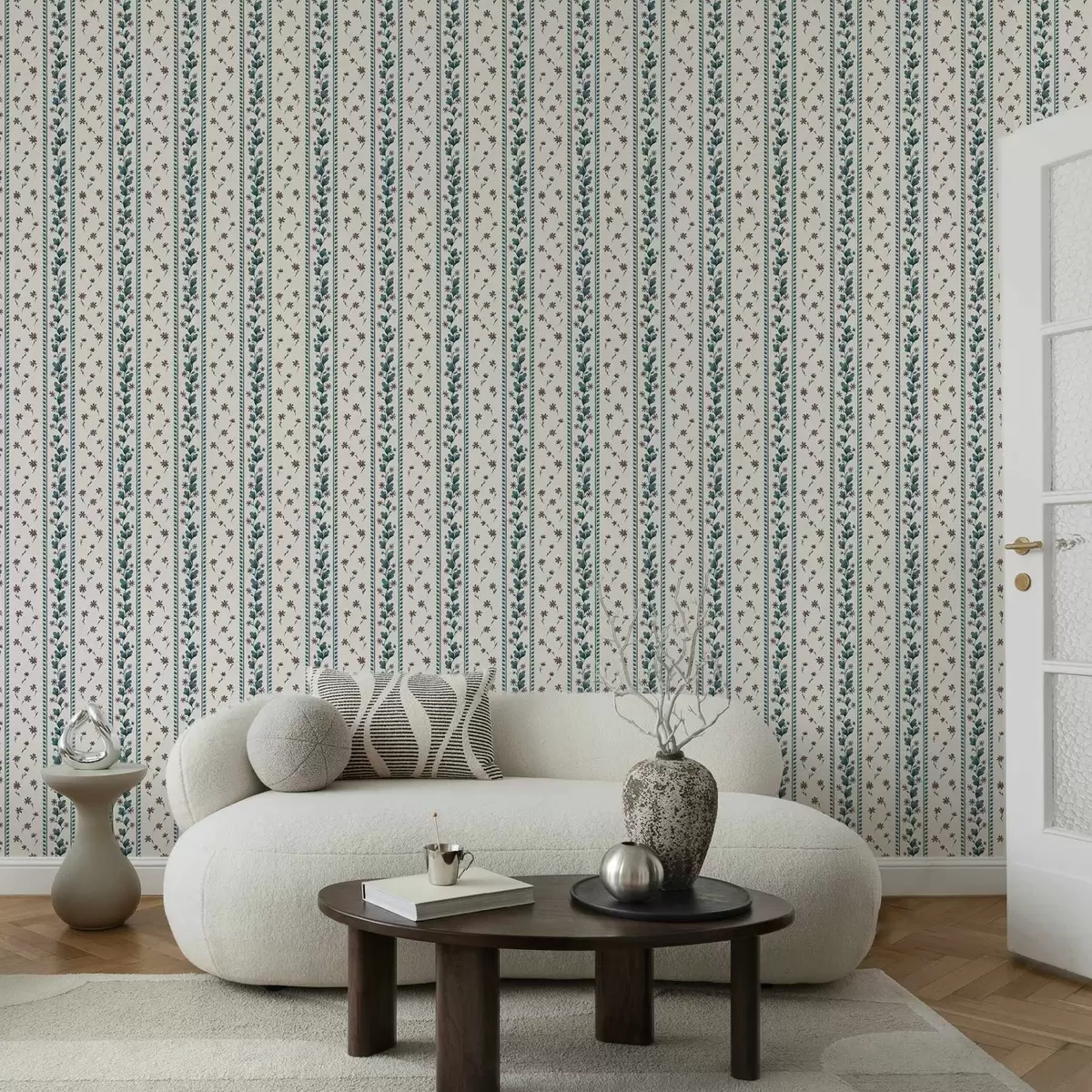 Tapeta Vertikální květinové pruhy v modro-hnědých tónech Nr. a00811