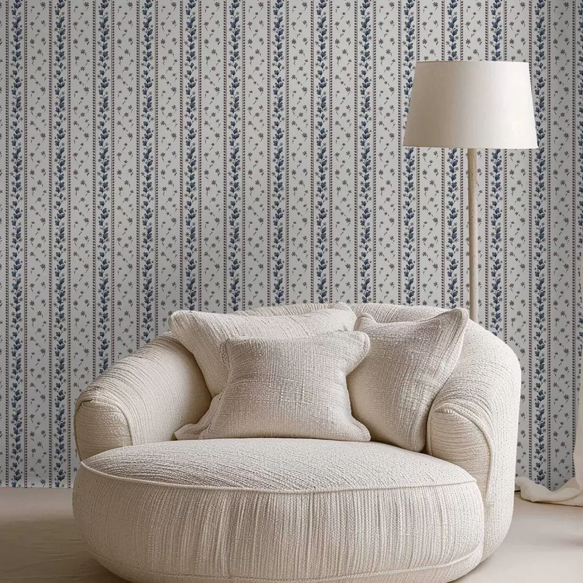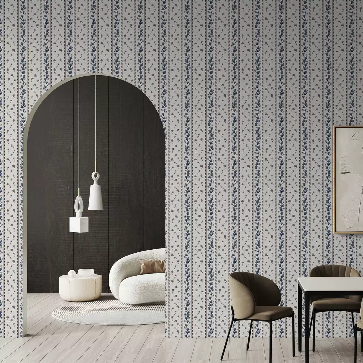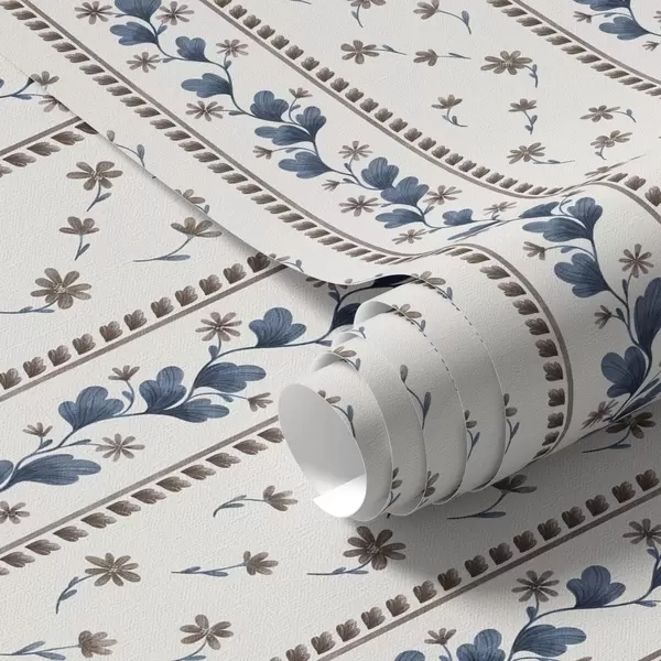 Tapeta Vertikální květinové pruhy v modro-hnědých odstínech Nr. a00811v2