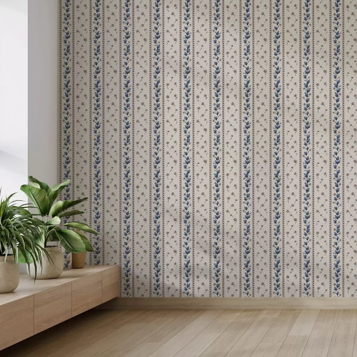 Tapeta Vertikální květinové pruhy v modro-hnědých tónech Nr. a00811v3