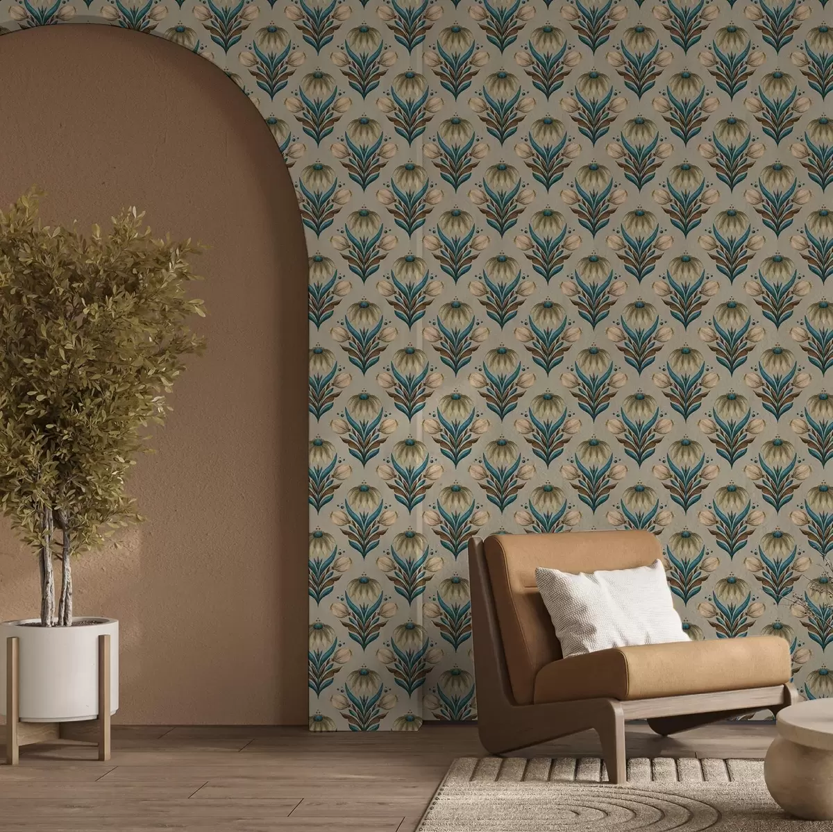 Tapeta Symetrický květinový ornament v teplých tónech Nr. a00812