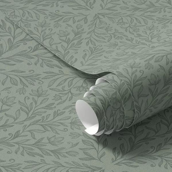 Tapeta Jemný botanický damašek v tlumené zelené barvě Nr. a00815v1