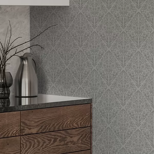 Tapeta Botanický damašek ve světle šedé barvě s jemným obrysem Nr. a00815v2